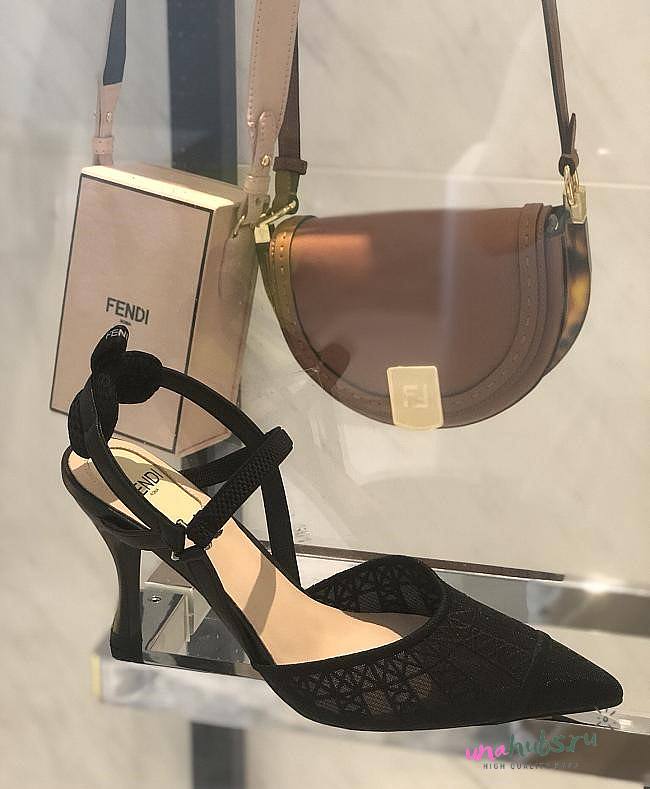 Fendi Black Lace Colibri Lite Slingback Pumps 8.5cm