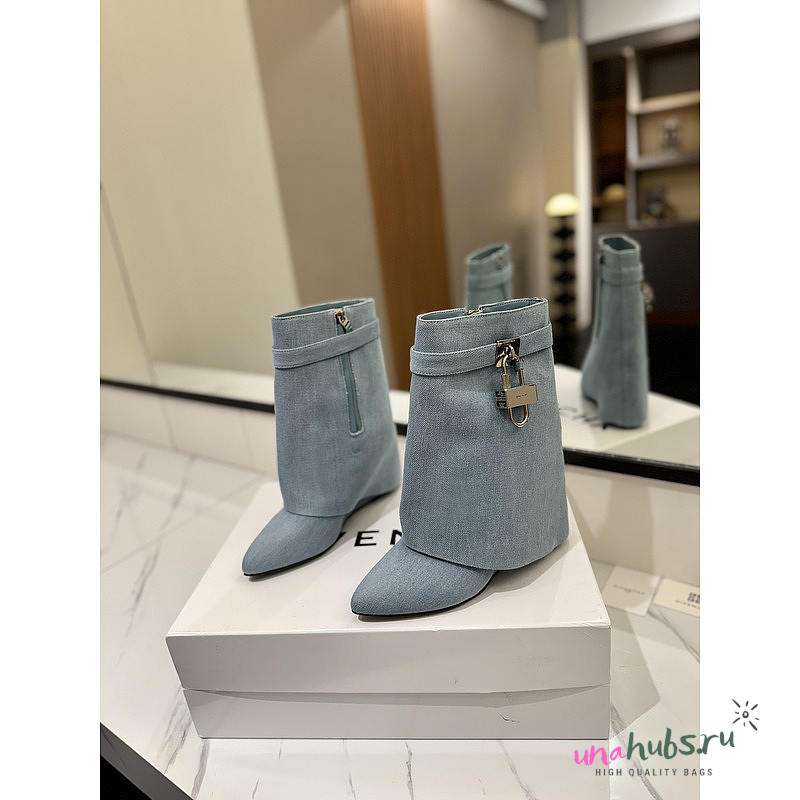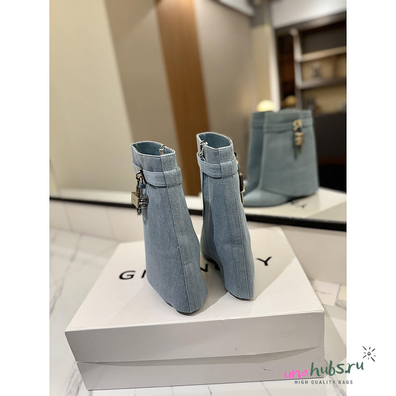 Givenchy Shark Lock Ankle Boots In Washed Denim Blue