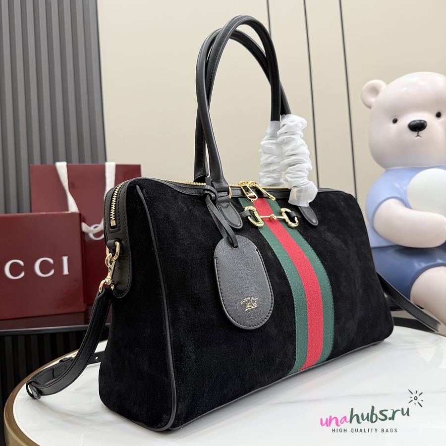 Gucci Borsetto large boston bag suede black 38.5x12.5x13cm - Unahubs