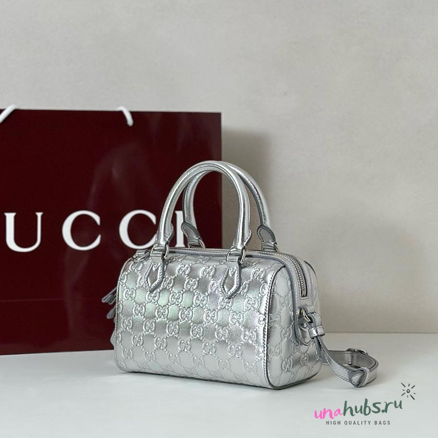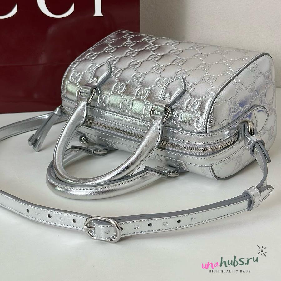 Gucci Emblem small boston bag in silver 20.5x14x11.5cm