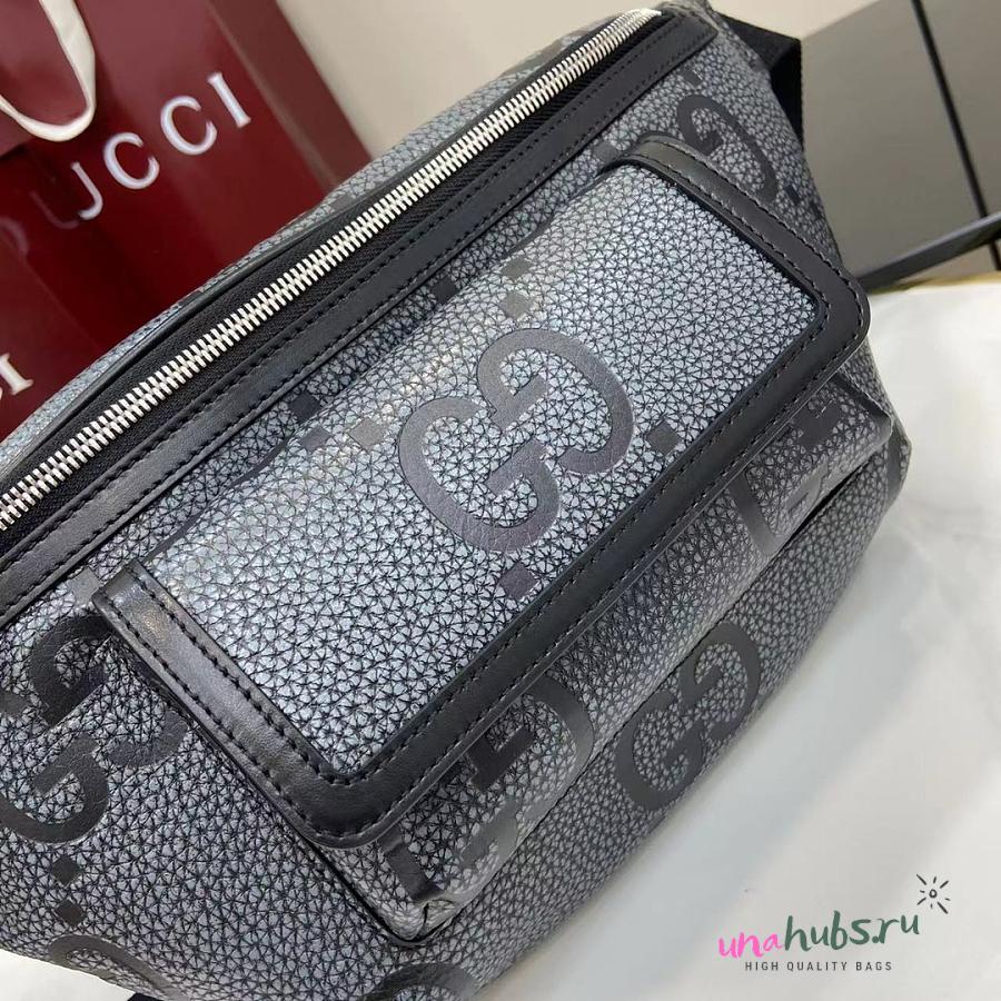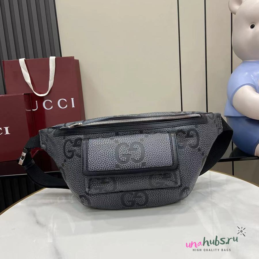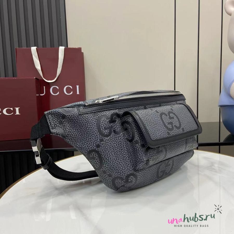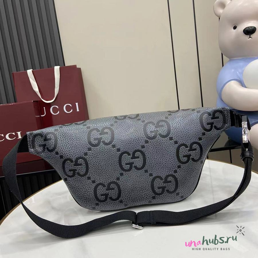 Gucci GG jumbo large belt bag in grey and black GG leather 28x18x8cm