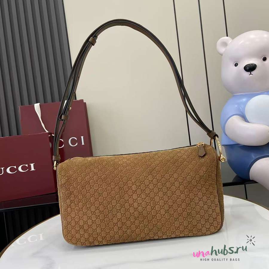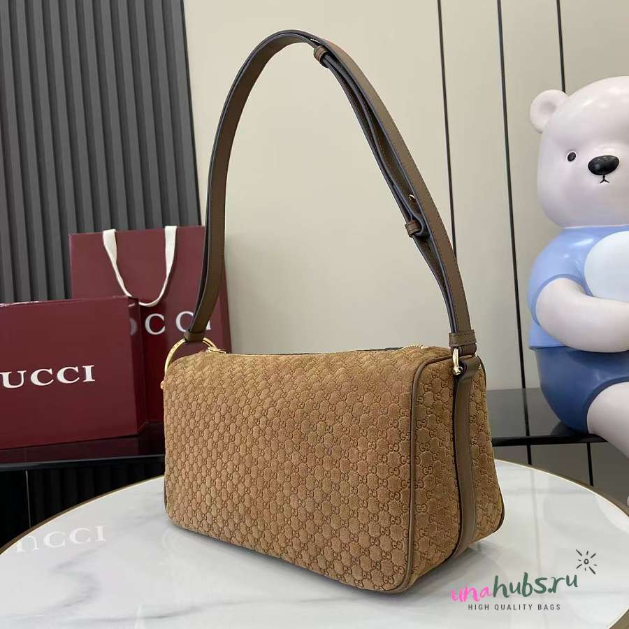 Gucci Softbit Shoulder Bag Brown Suede 46x26x16cm