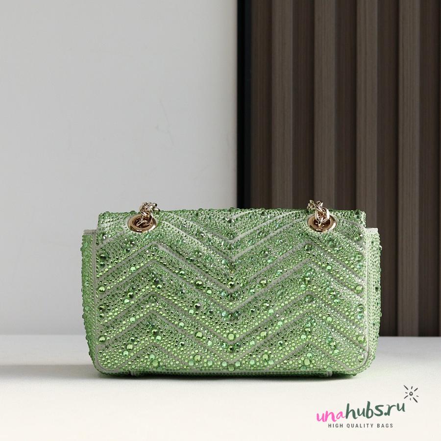 Gucci Marmont crystals small shoulder bag green 22x12.5x6cm