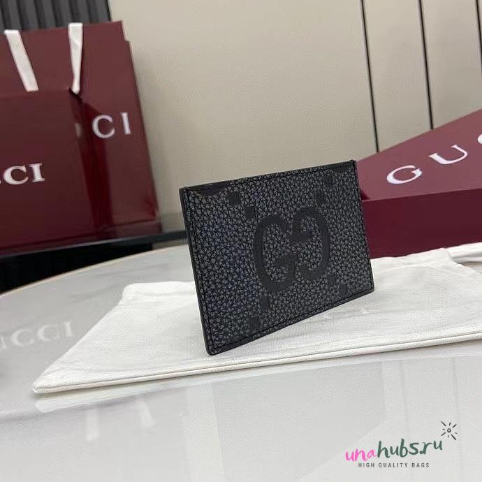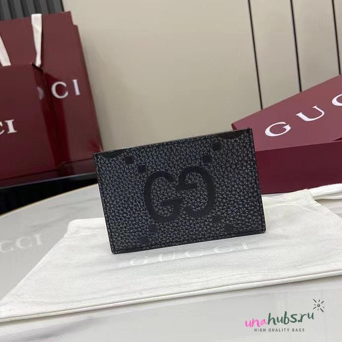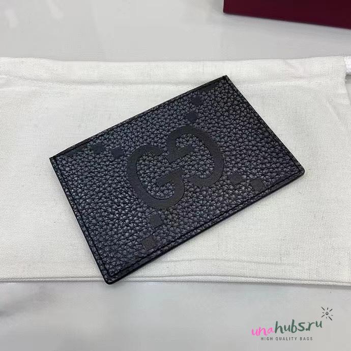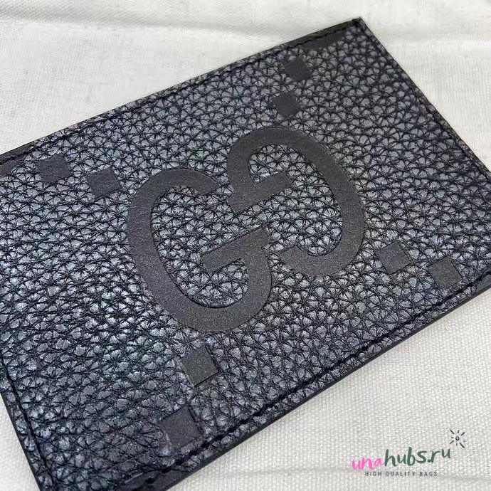 Gucci Maxi GG card case in dark grey and black leather - 12x8cm