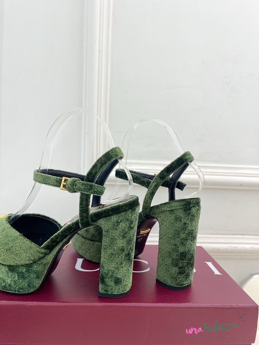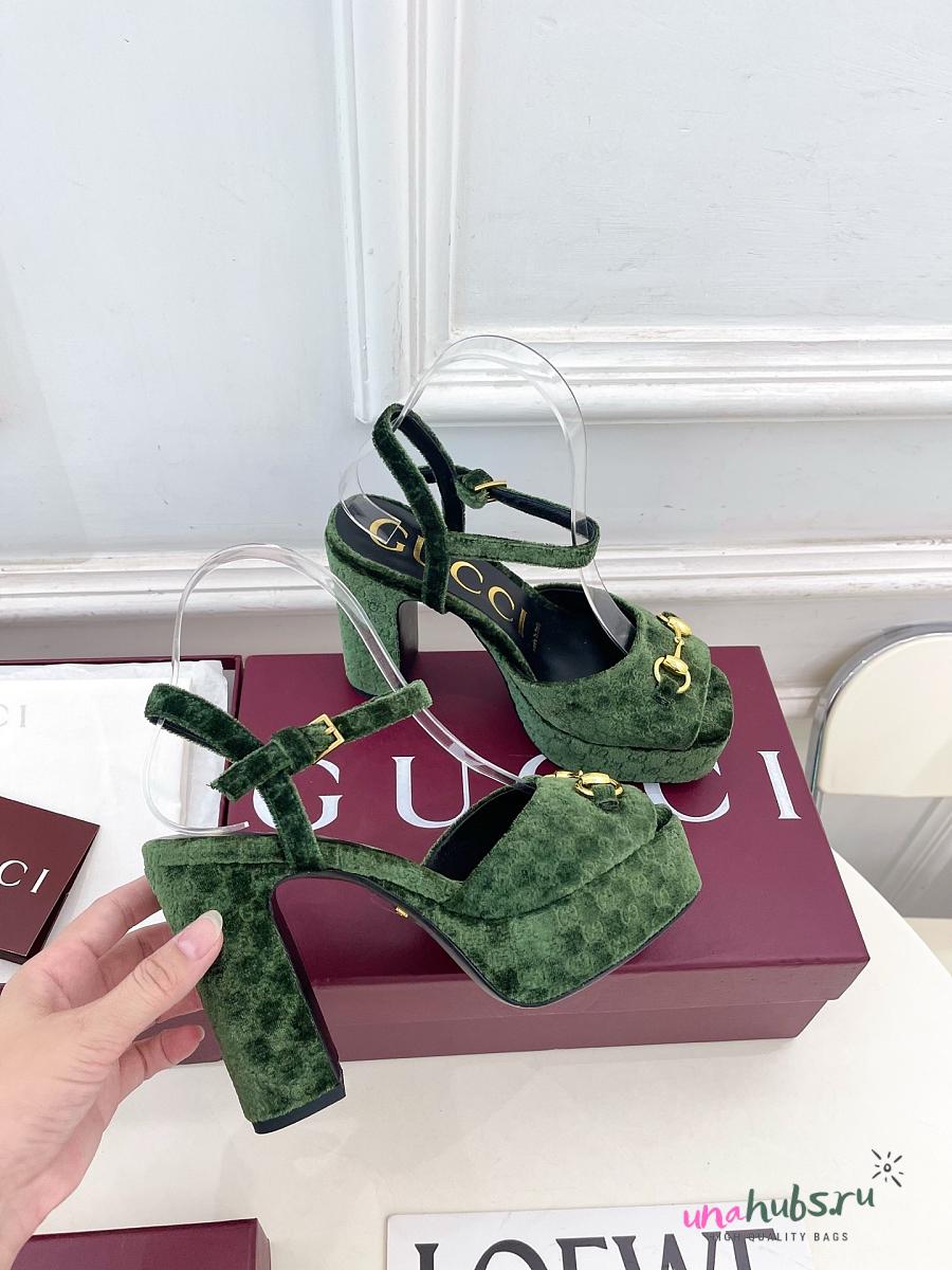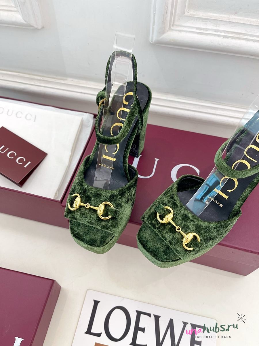 Gucci platform sandal with Horsebit Green velvet 11cm
