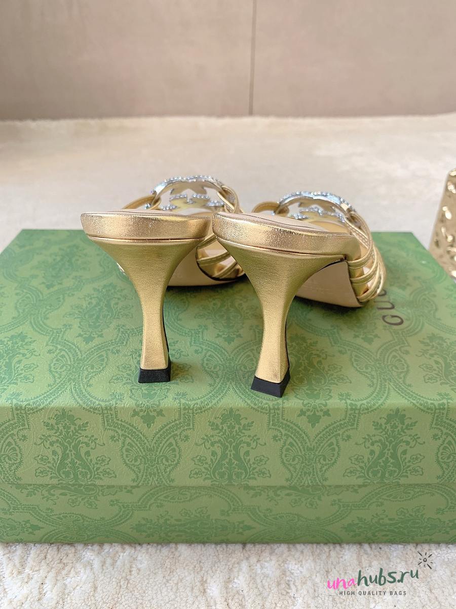 Gucci slide sandal with crystal Interlocking G gold 8.5cm