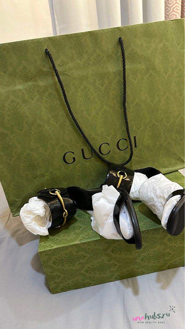 Gucci Ursula Patent Leather Horsebit Ankle Strap