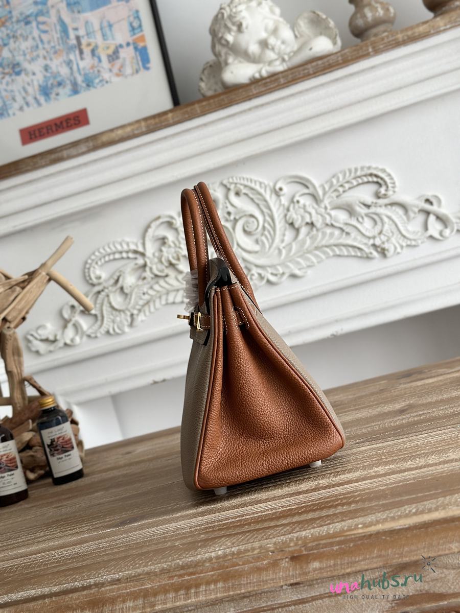 Hermes Birkin 25 Bag Grey Brown Gold Togo 25cm