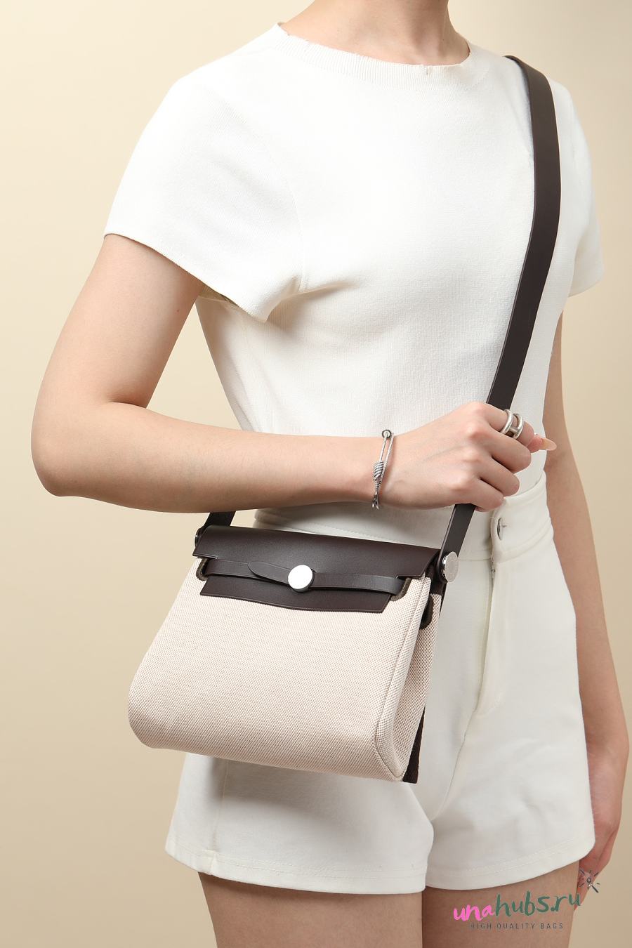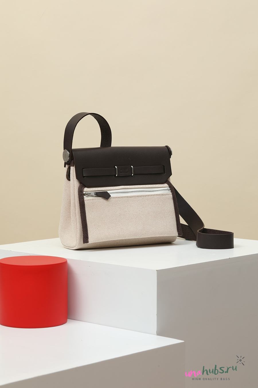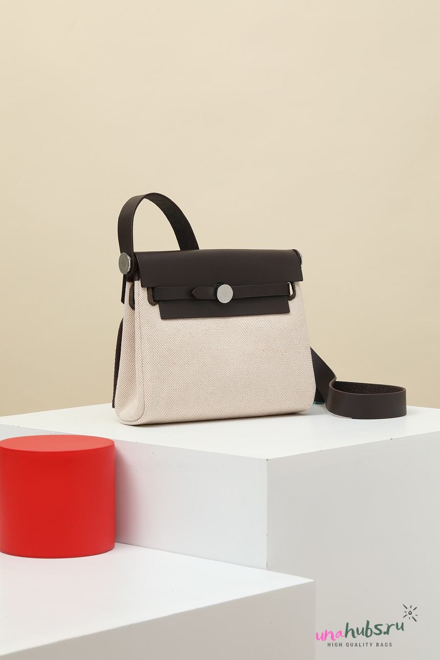 Hermes Herbag Zip 20 bag in dark chocolate/cream