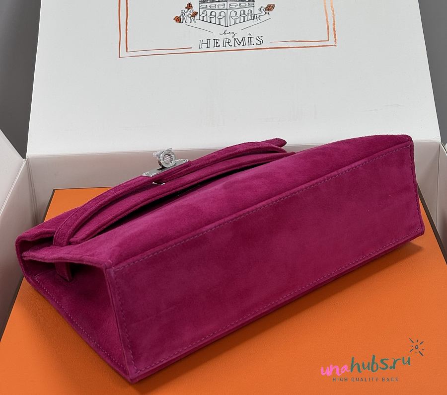 Hermes Kelly Pochette Pink Suede Clutch Bag 22x12x5cm