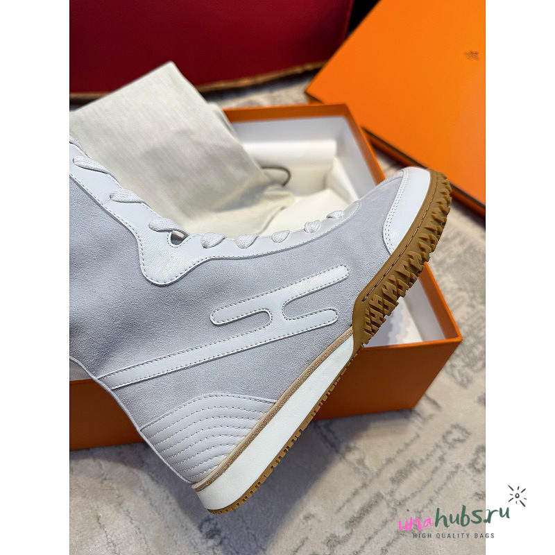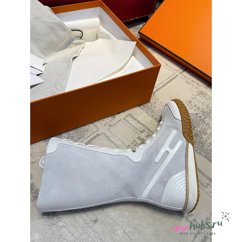 Hermes Lace Up Sneaker Suede White