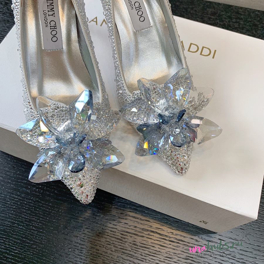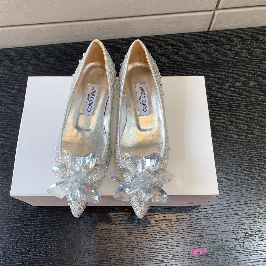 Jimmy Choo Silver Mix Crystal Covered Pointy Toe Pump
