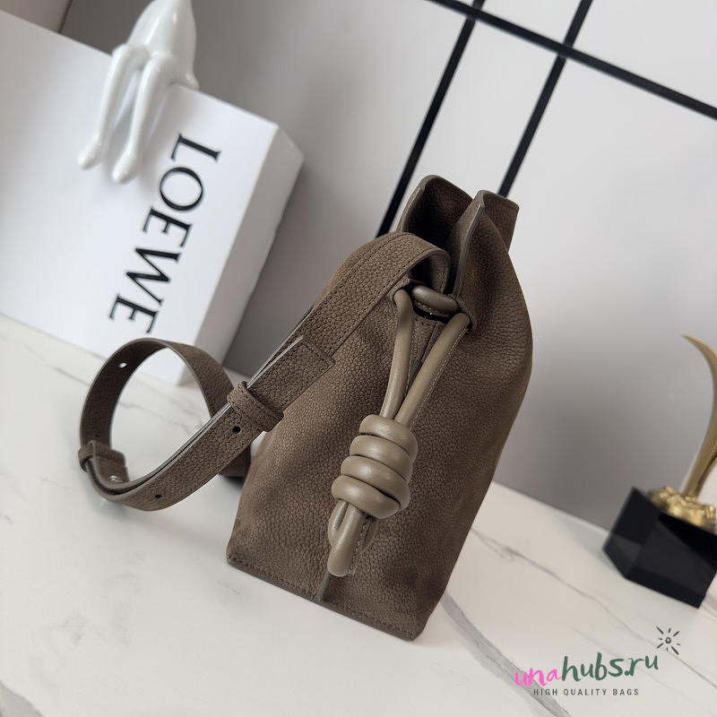 Loewe Mini Flamenco Purse In Dark Oak Grained 23x18x9cm