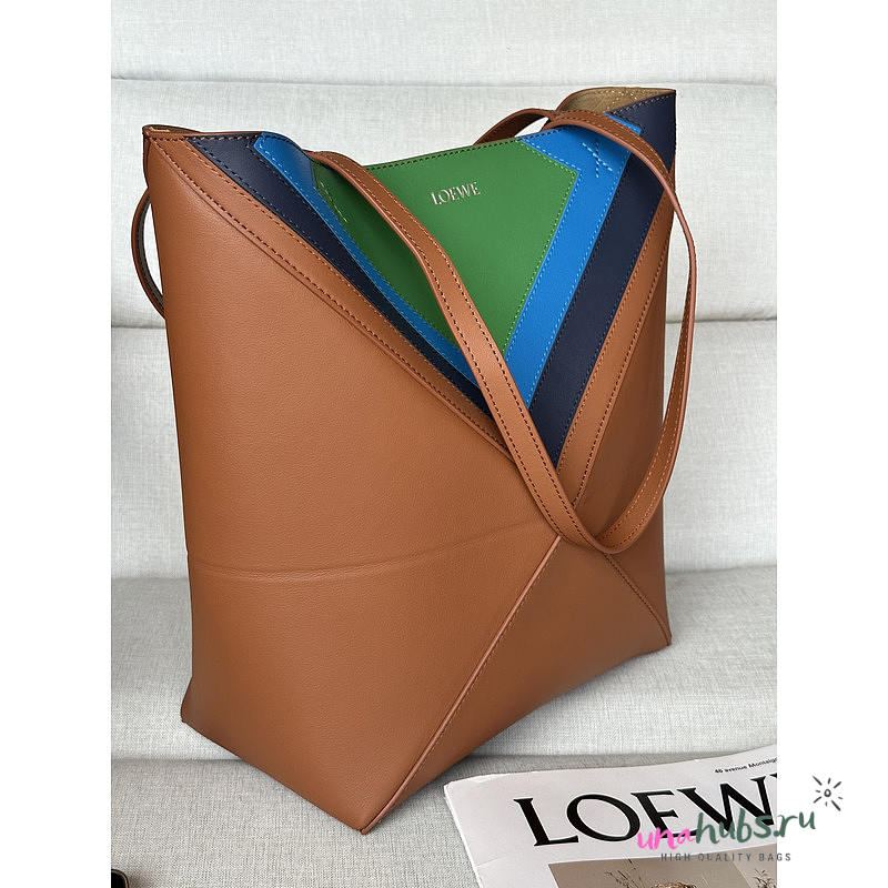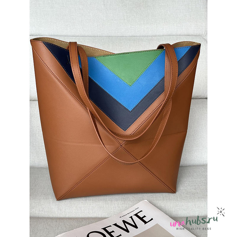 Loewe Medium Puzzle Fold Tote Brown/Black & Blue/Green 31cm