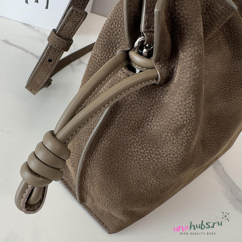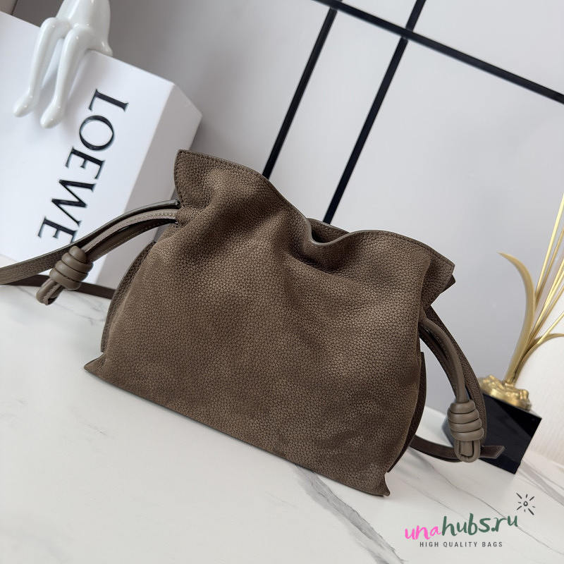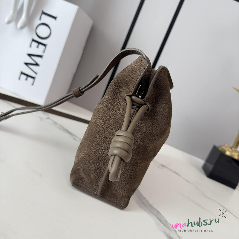 Loewe Mini Flamenco Purse In Dark Oak Grained 23x18x9cm