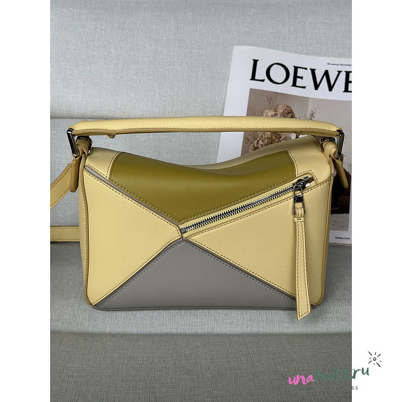 Loewe Small Puzzle Bag Calfskin Grey/ Yellow 24x10.5x16cm