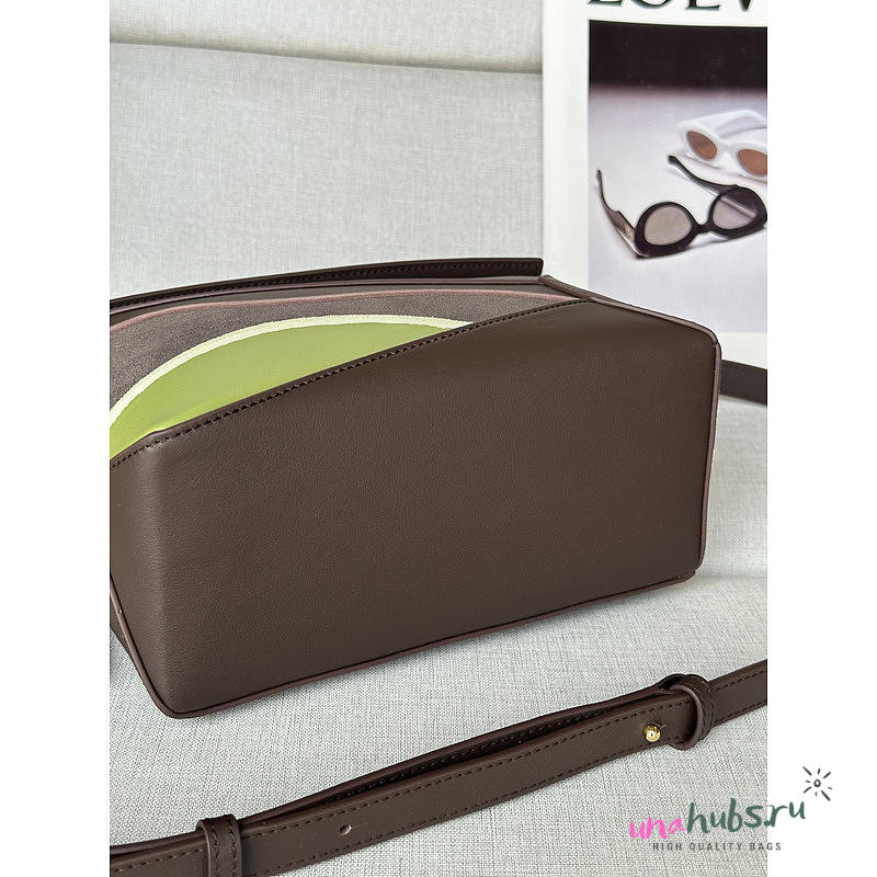 Loewe Small Puzzle Edge Landscape Bag Calfskin Chocolate / Light Moss 24cm