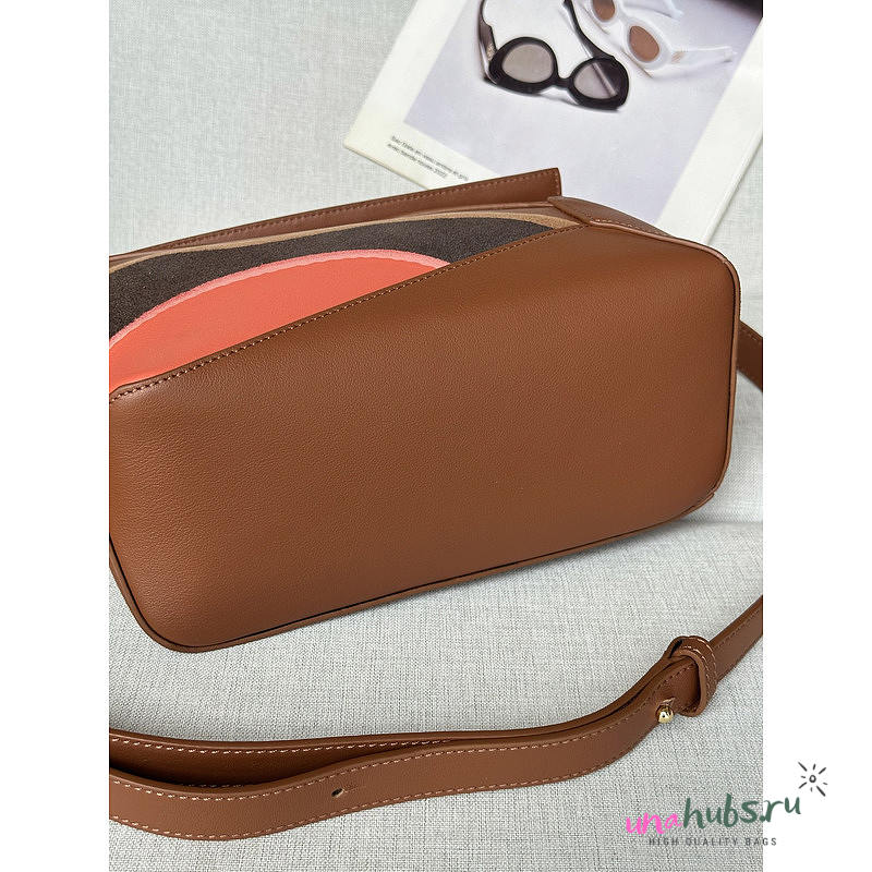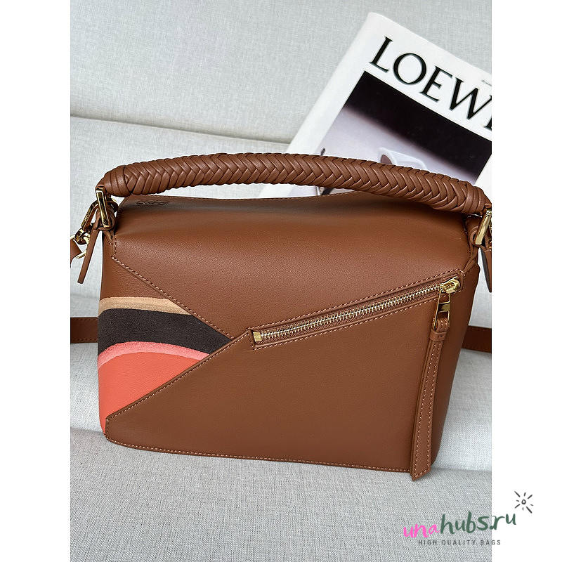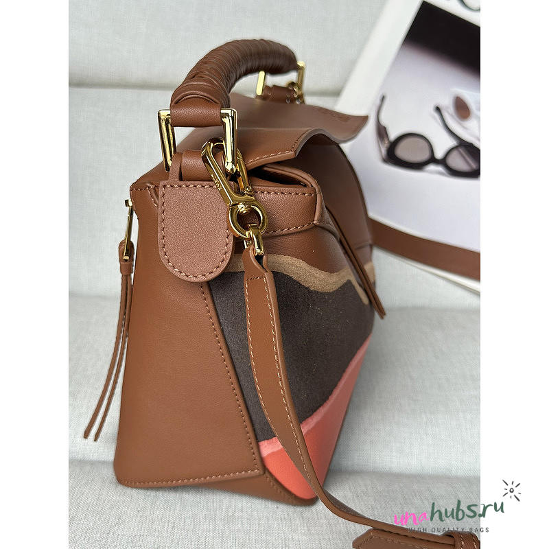 Loewe Small Puzzle Edge Landscape Bag Calfskin Pecan / Parrot Pink 24cm