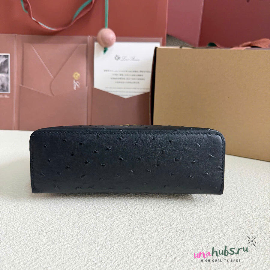 Loro Piana Extra Pocket L19 Ostrich Leather Black Gold 19cm