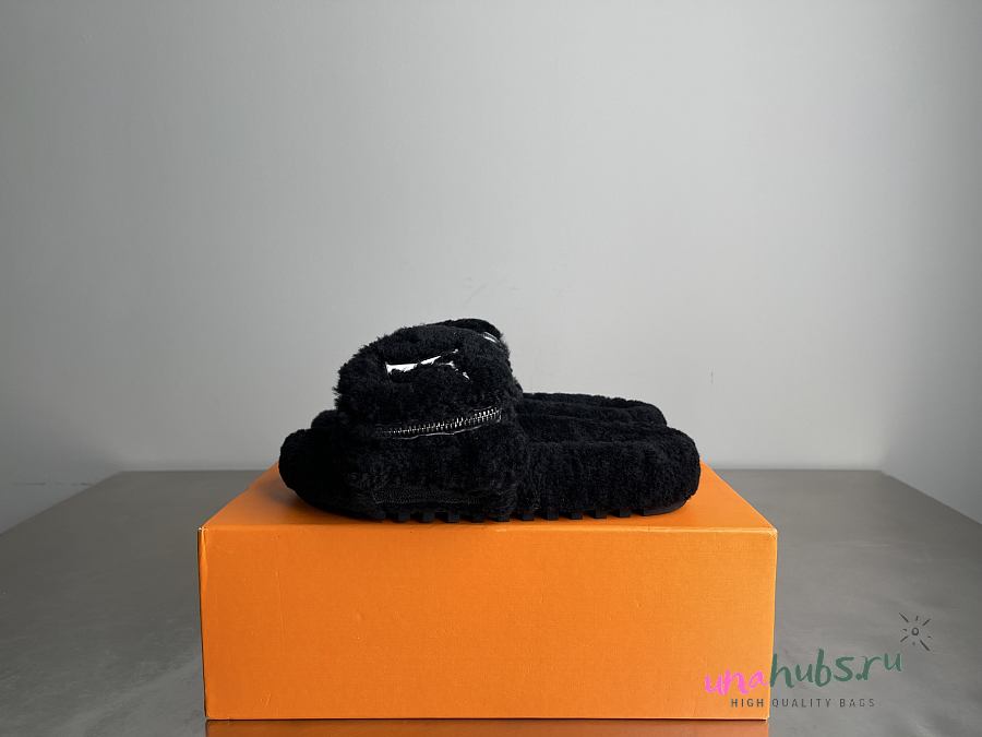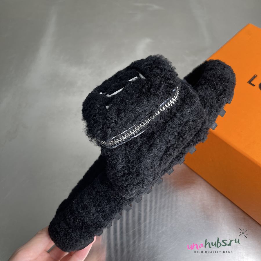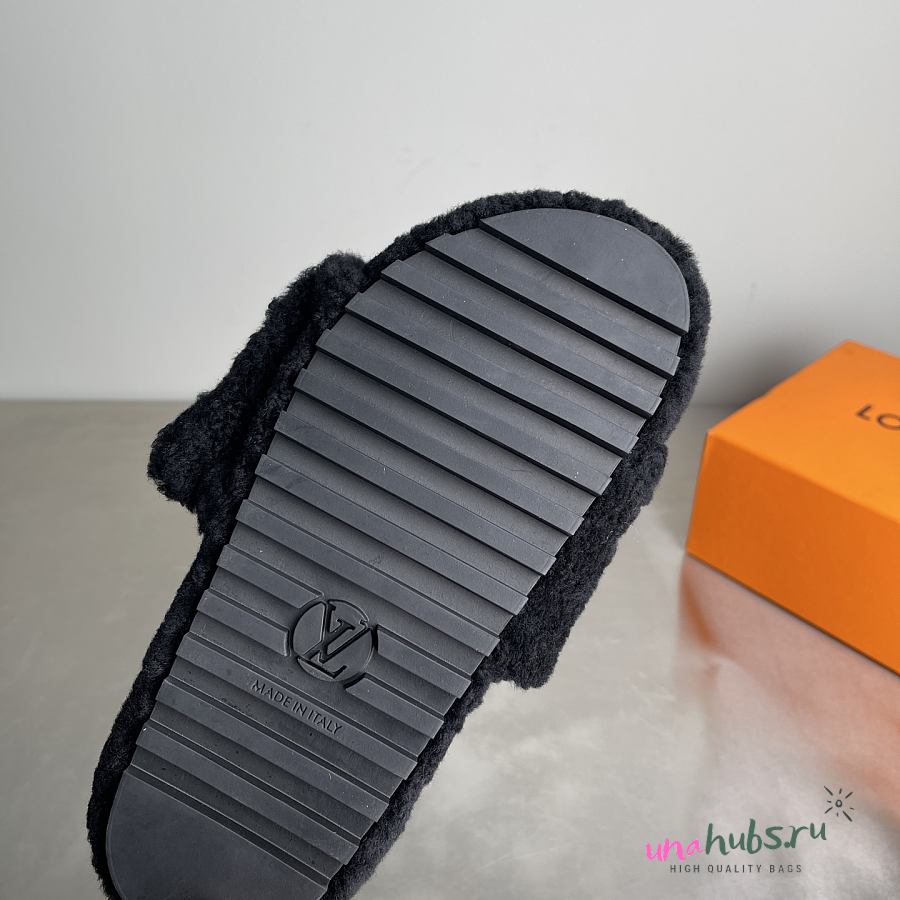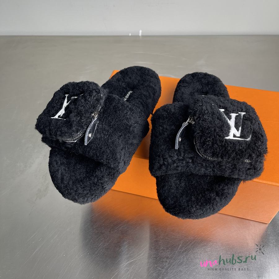 Louis Vuitton Black Fur Slides