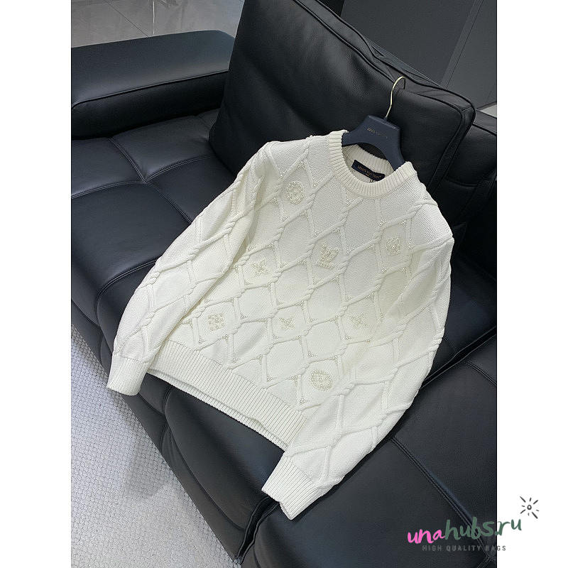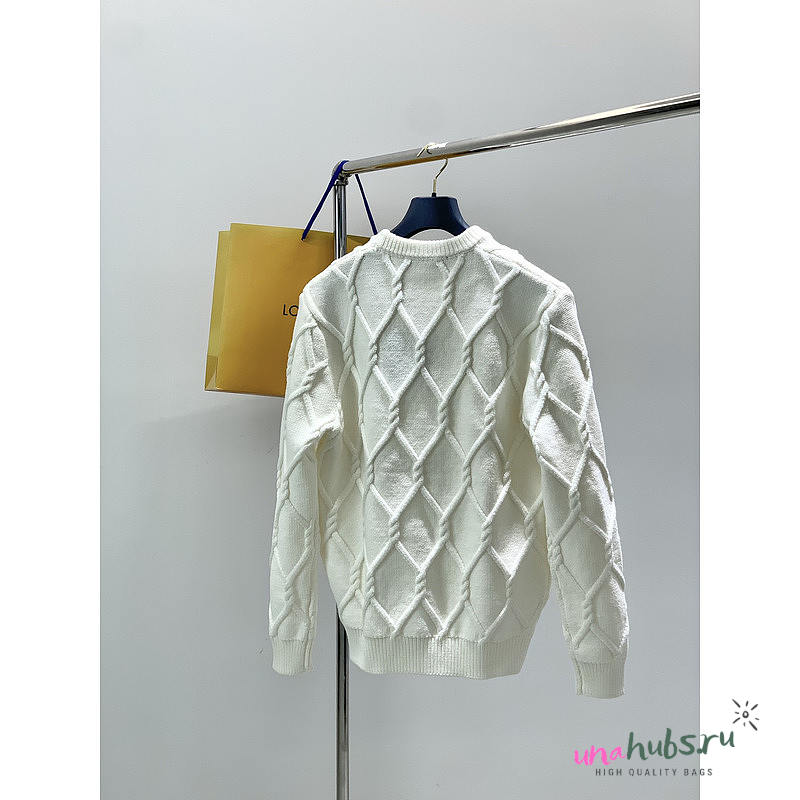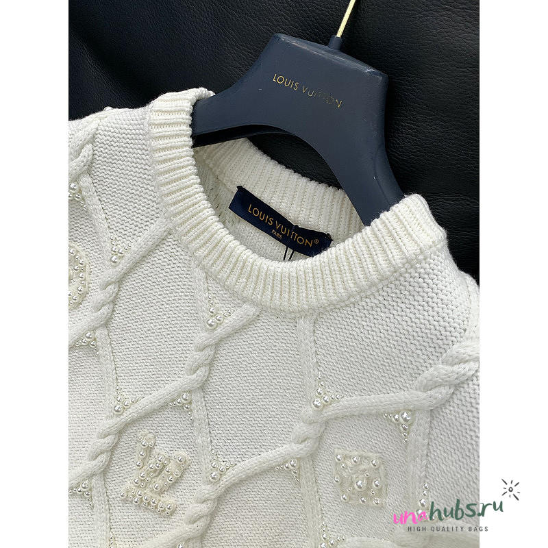 Louis Vuitton Embellished Cable Knit Wool Blend Jumper White