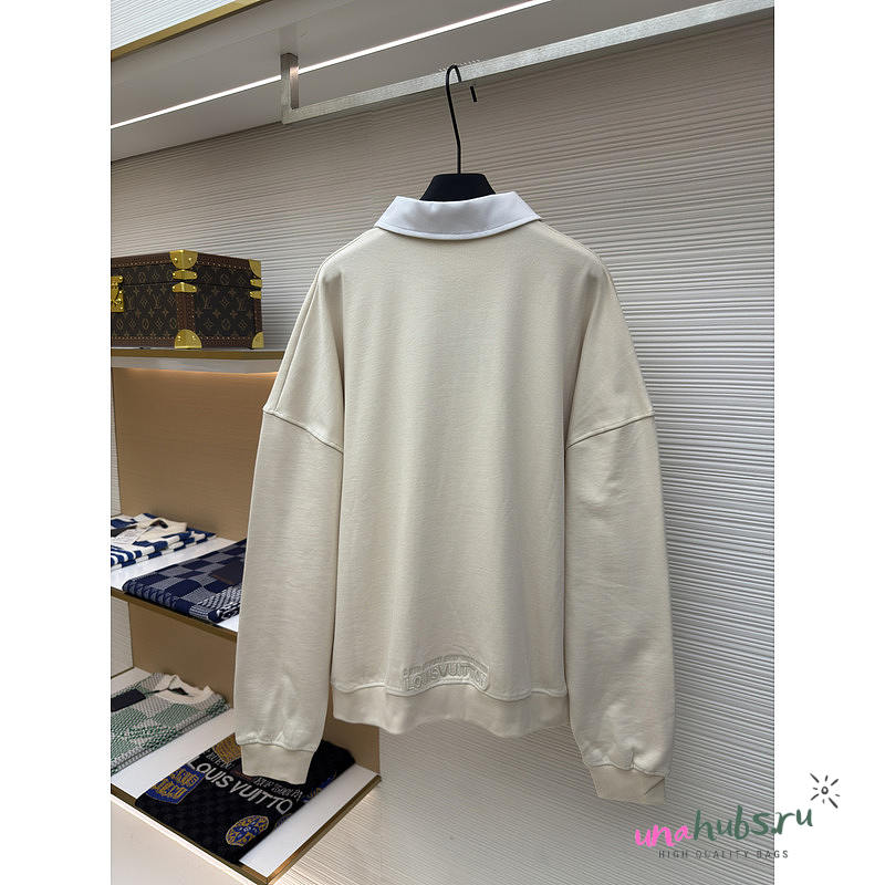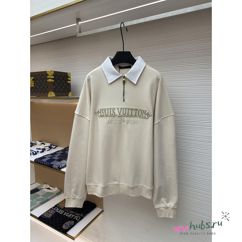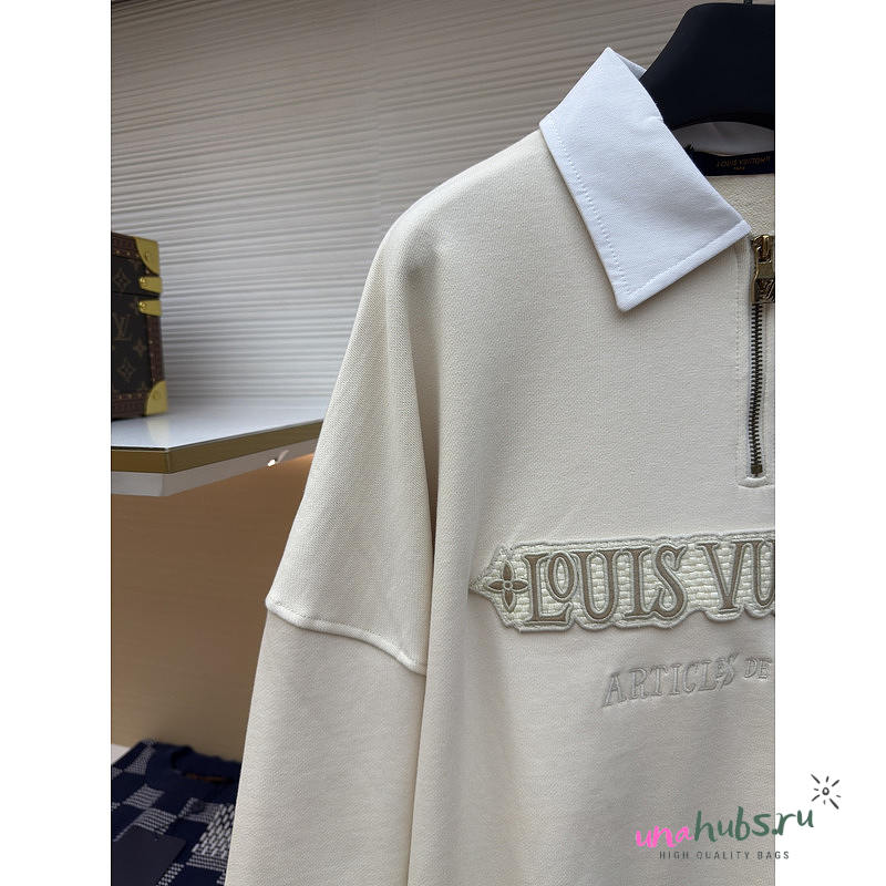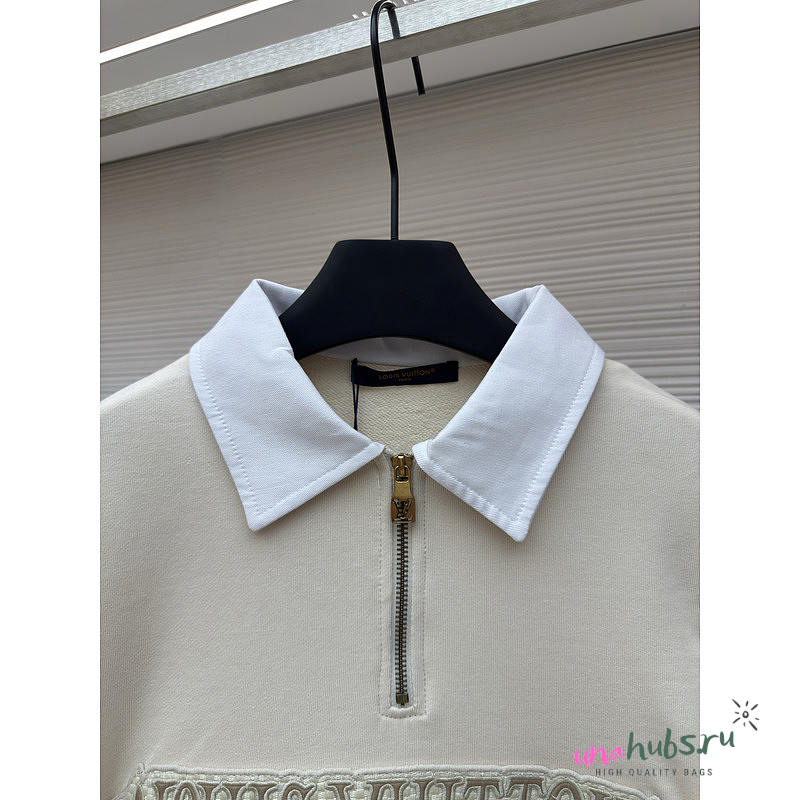 Louis Vuitton Embellished Half Zip Sweatshirt Cotton Light Beige