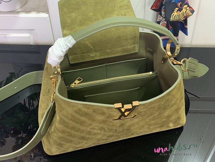 Louis Vuitton Sac Capucines MM Souple Green Suede 33x24x12cm