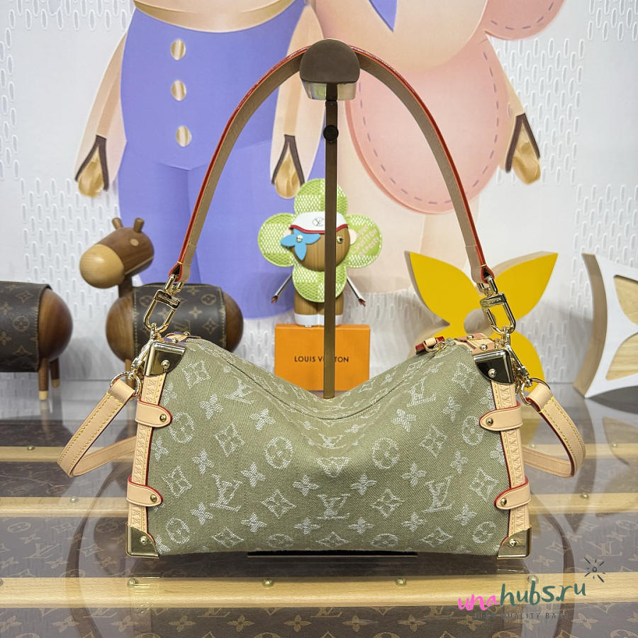 Louis Vuitton Side Trunk MM East West Khaki Denim 28x15x7cm - Unahubs
