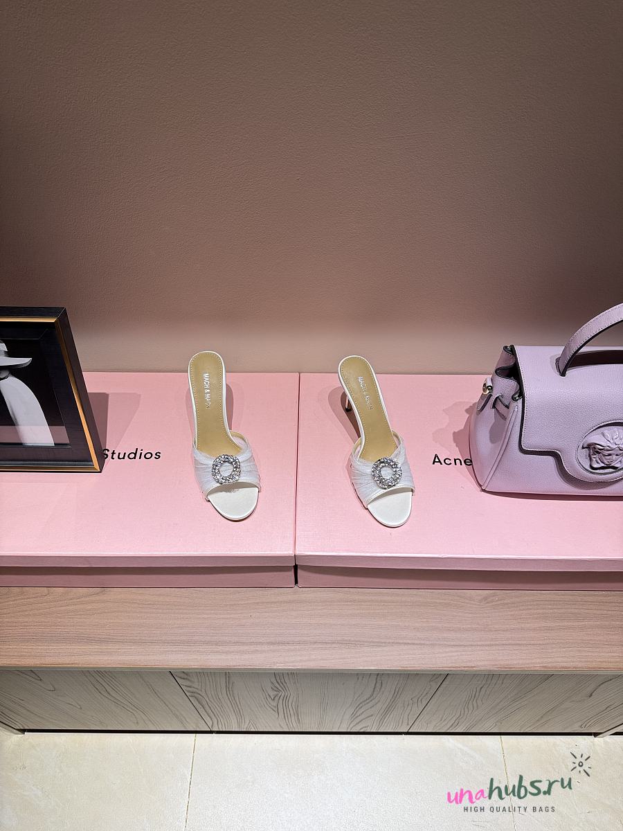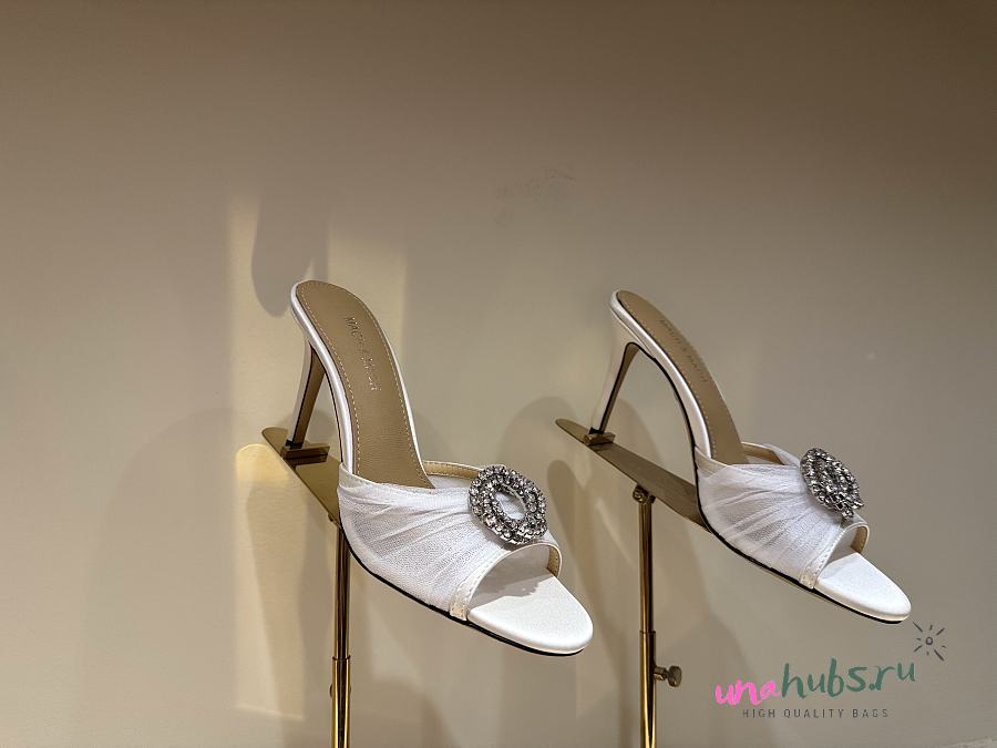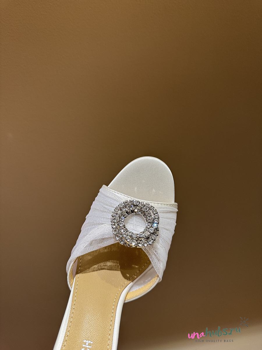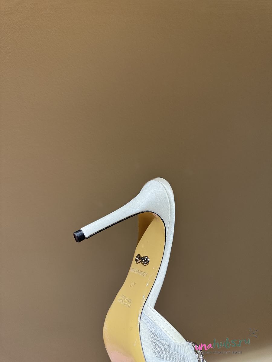 Mach & Mach White Satin Crystal Embellished Double Bow Pumps 9.5cm