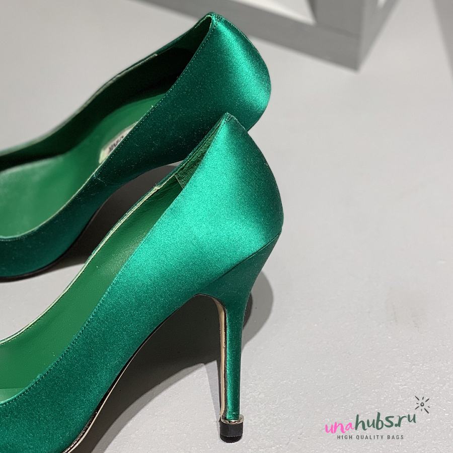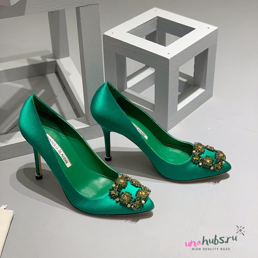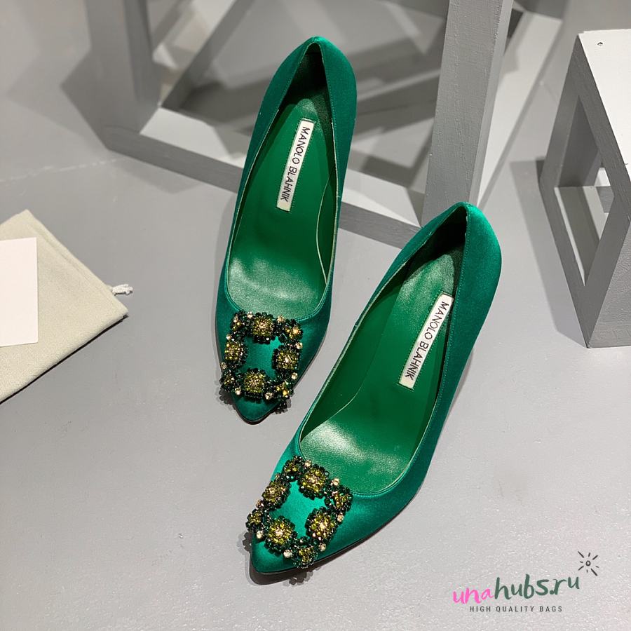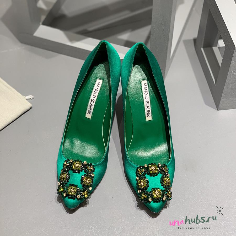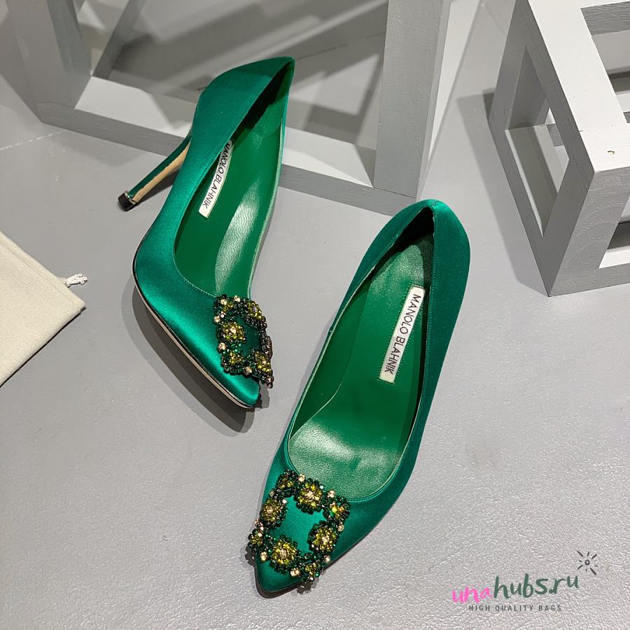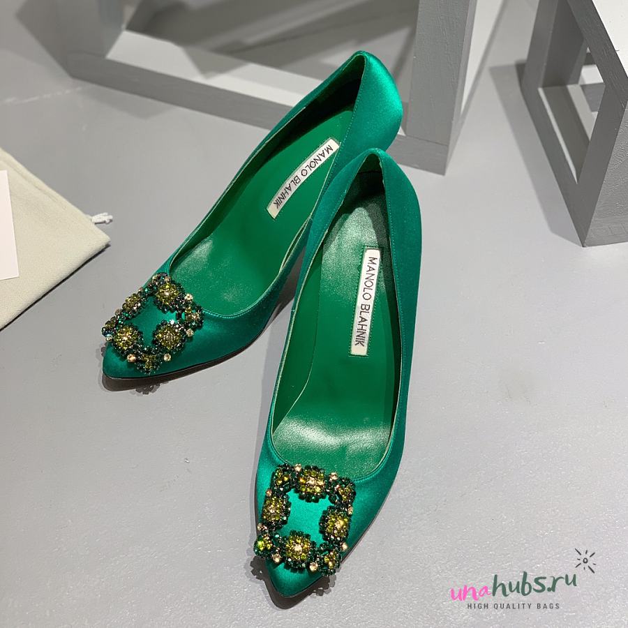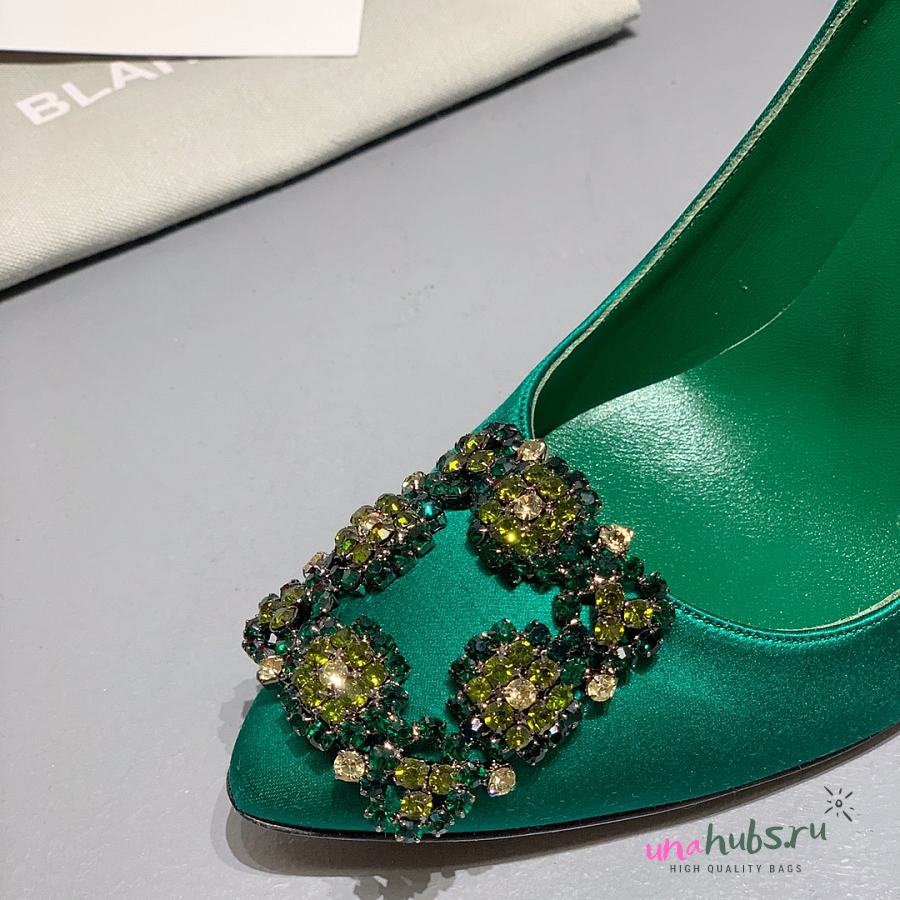 Manolo Blahnik Emerald Green Hangisi Buckle Satin Pumps 10cm