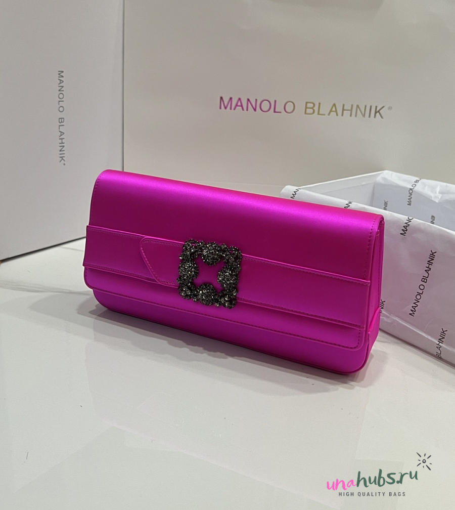 Manolo Blahnik Gothisi Fuchsia Satin Clutch 24x12x3cm