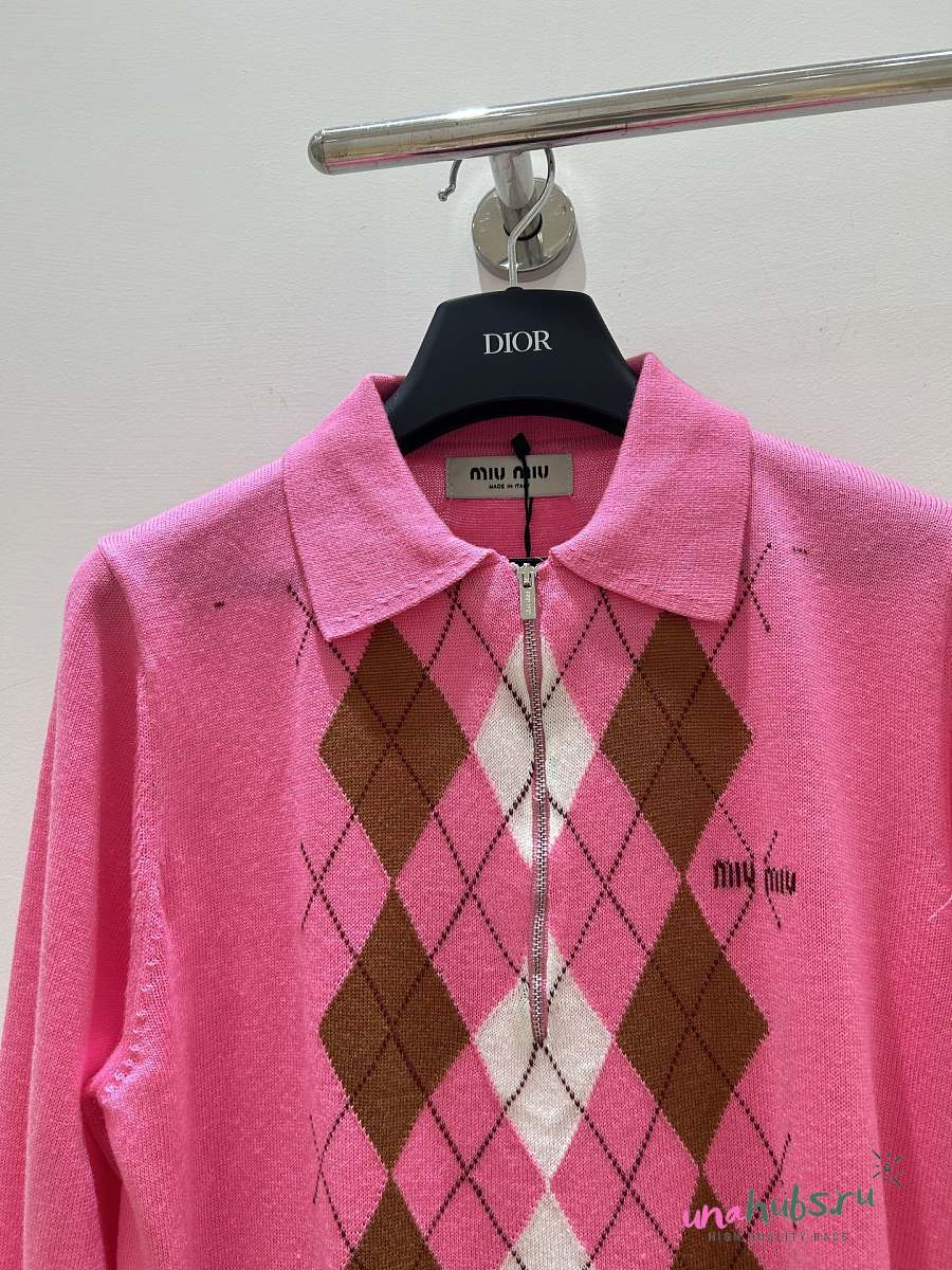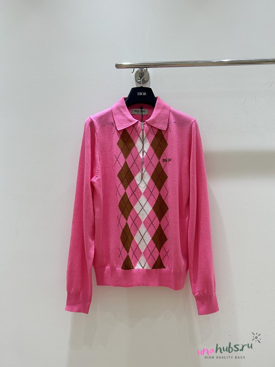Miu Miu argyle intarsia-knit half-zip sweater