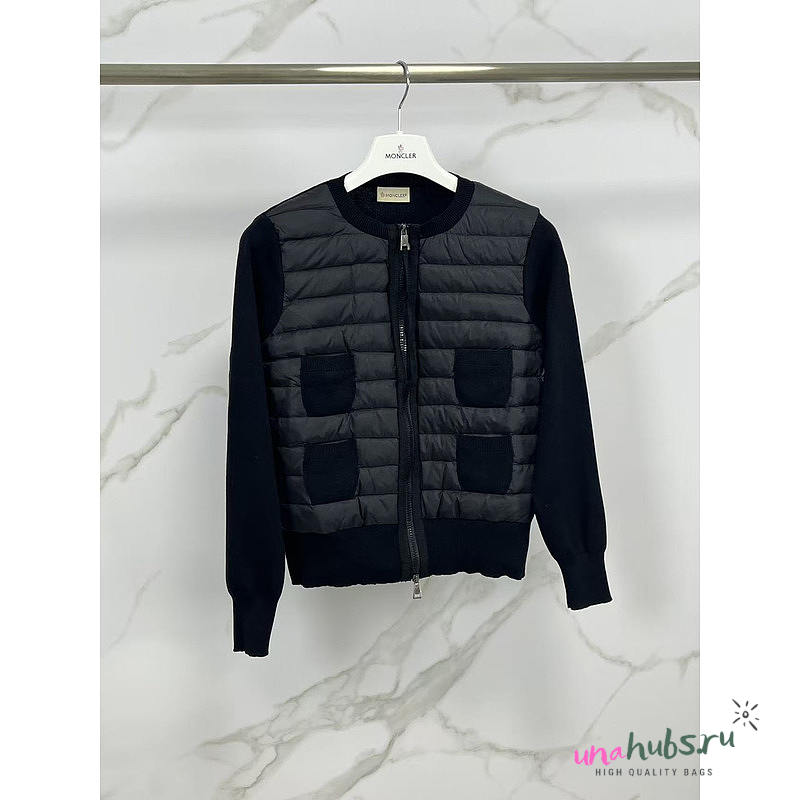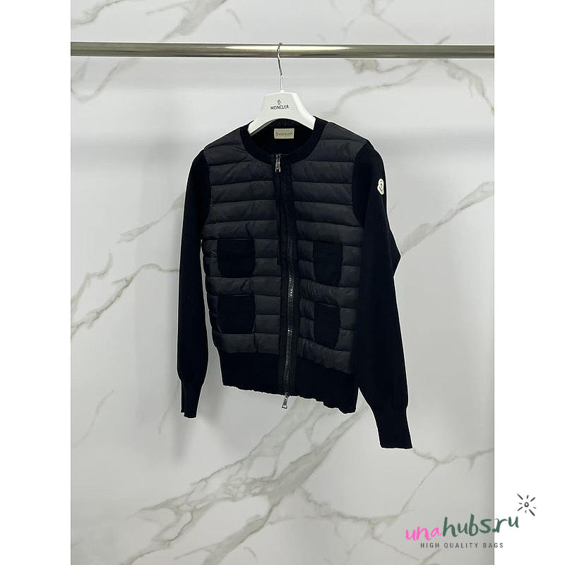Moncler Padded Wool Zip-Up Cardigan In Black