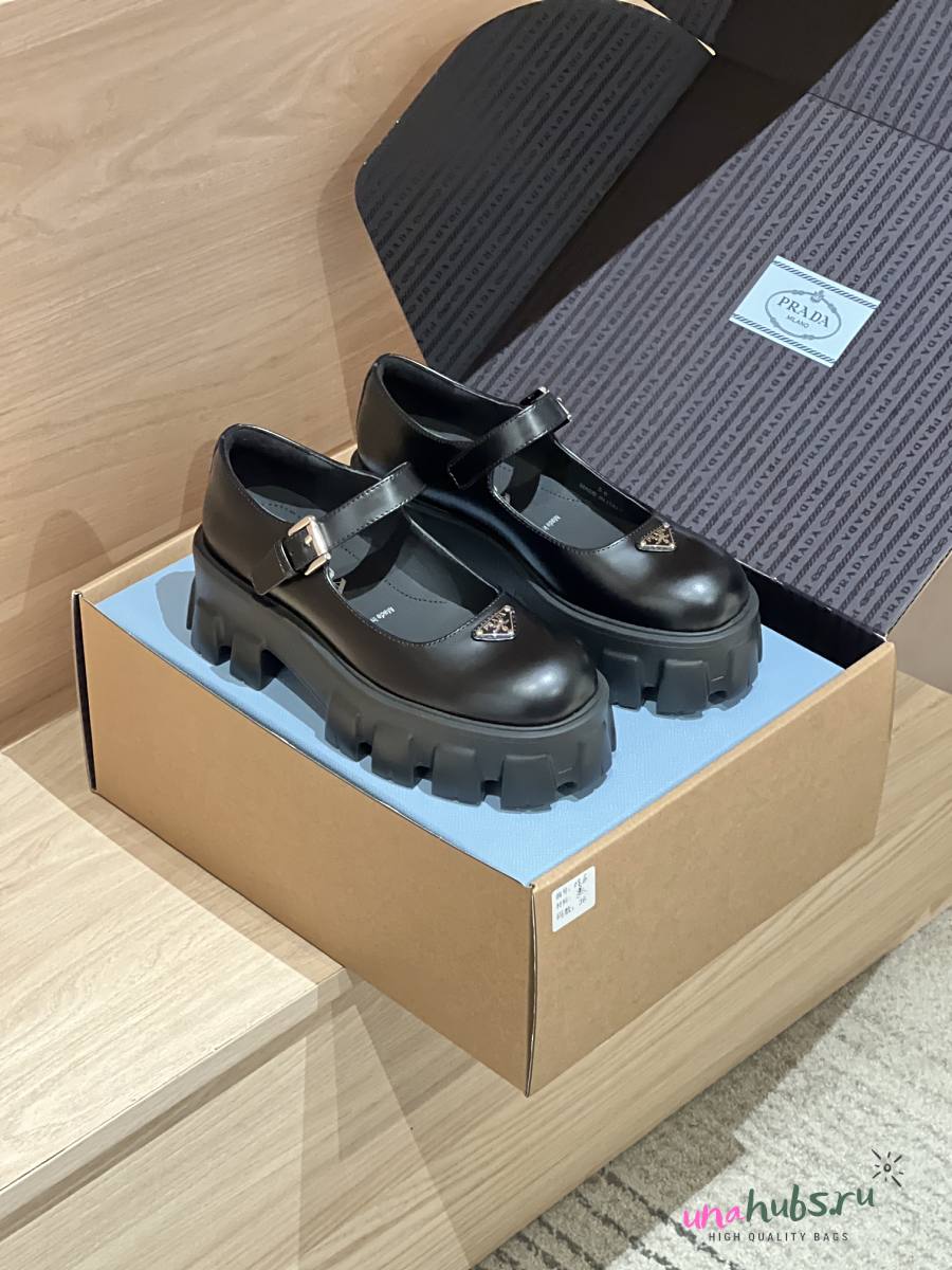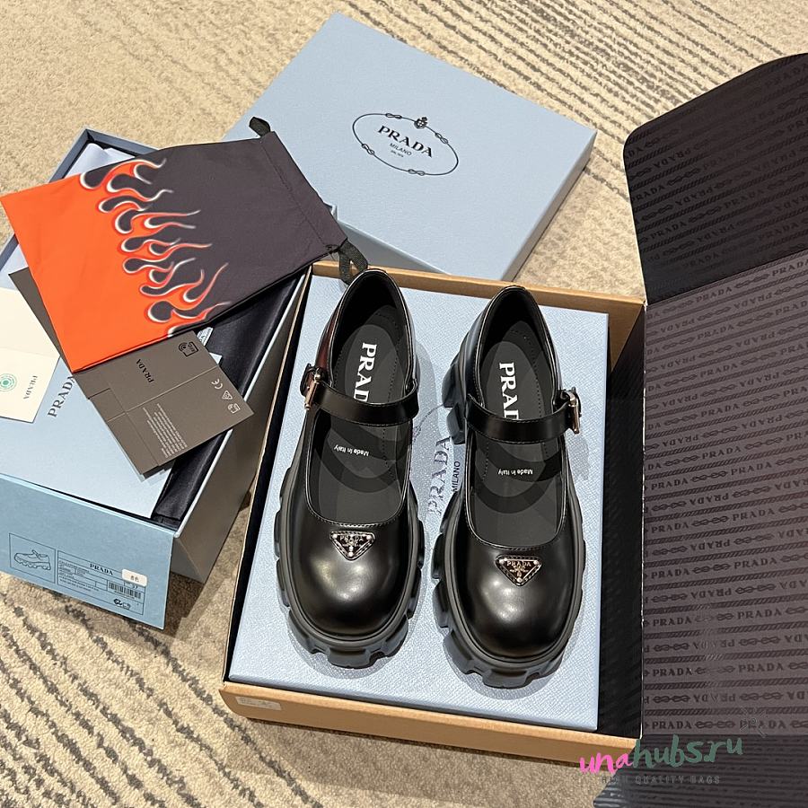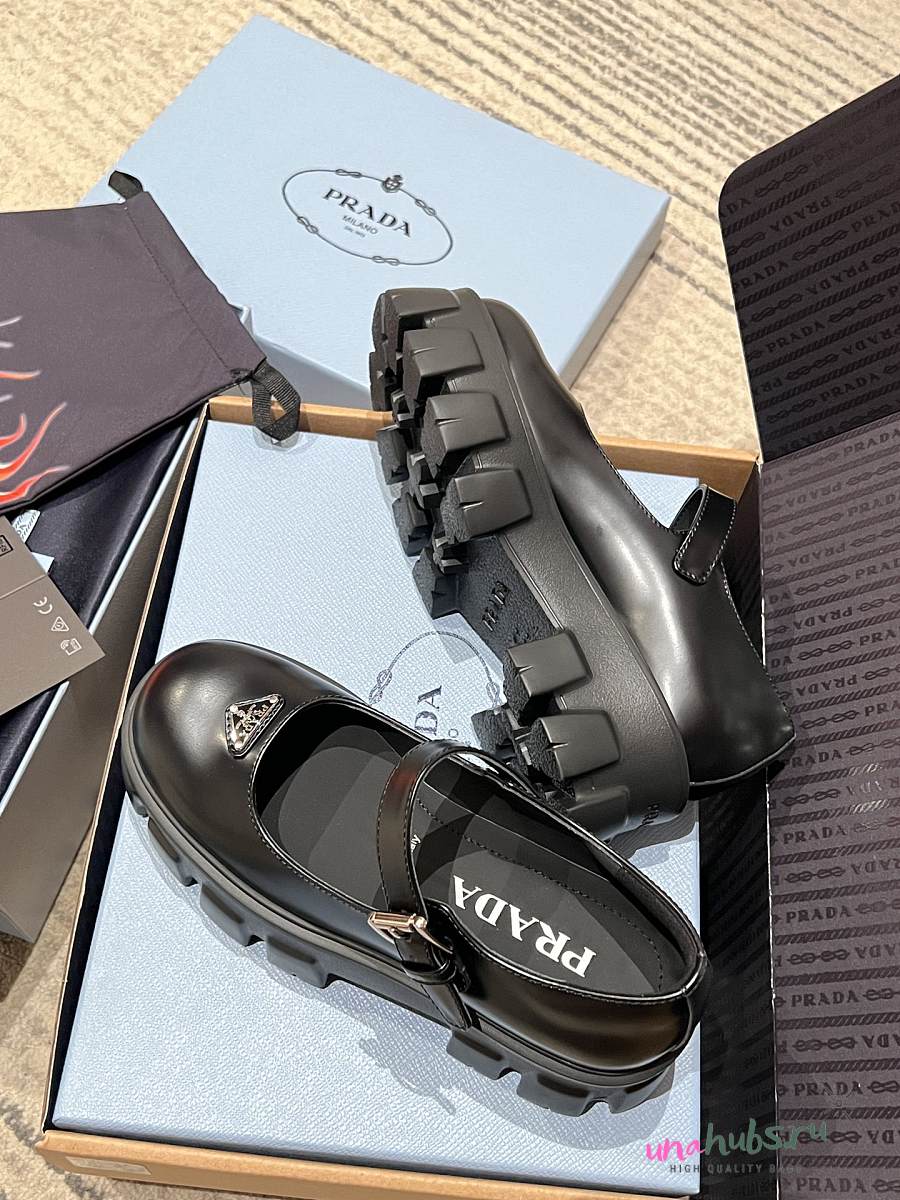 Prada Black Smooth Leather Loafers With Gold Hardware