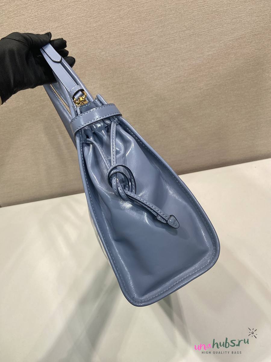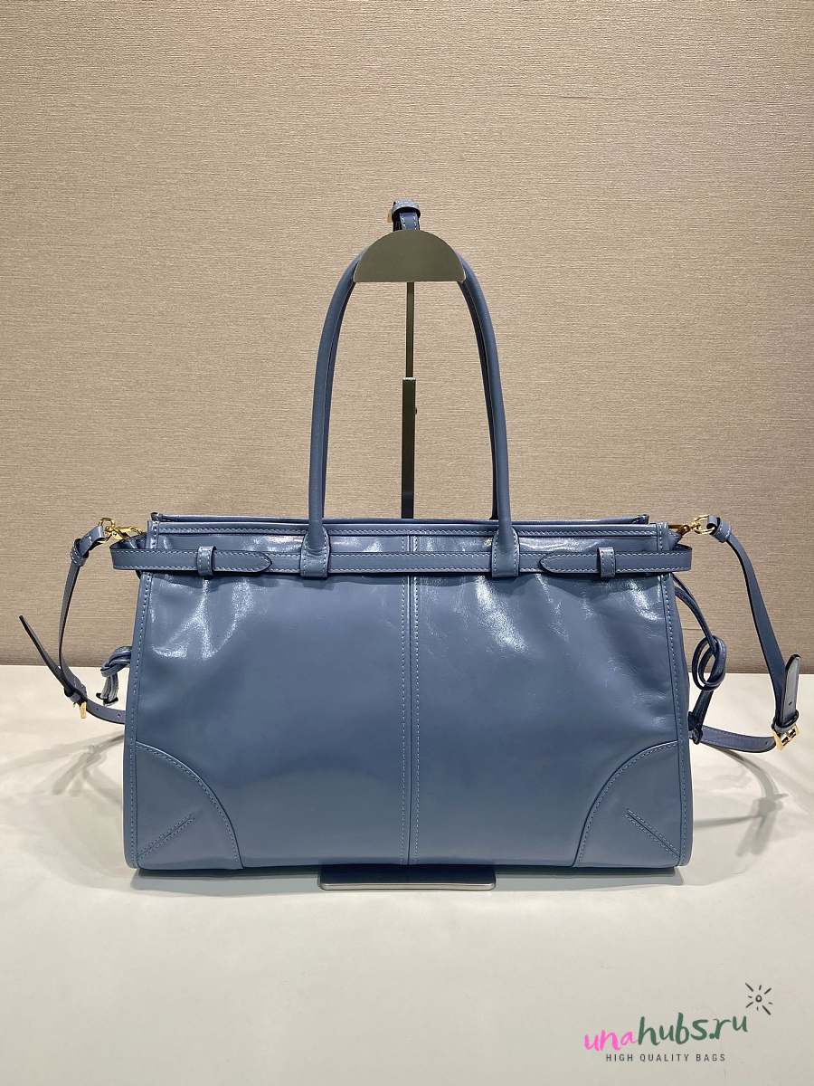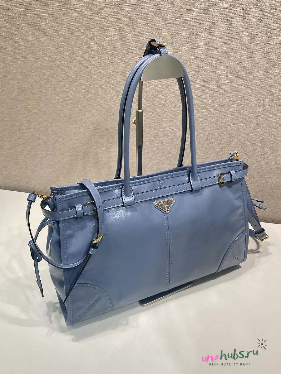 Prada Bonnie Leather Handbag Blue 38x30x12cm