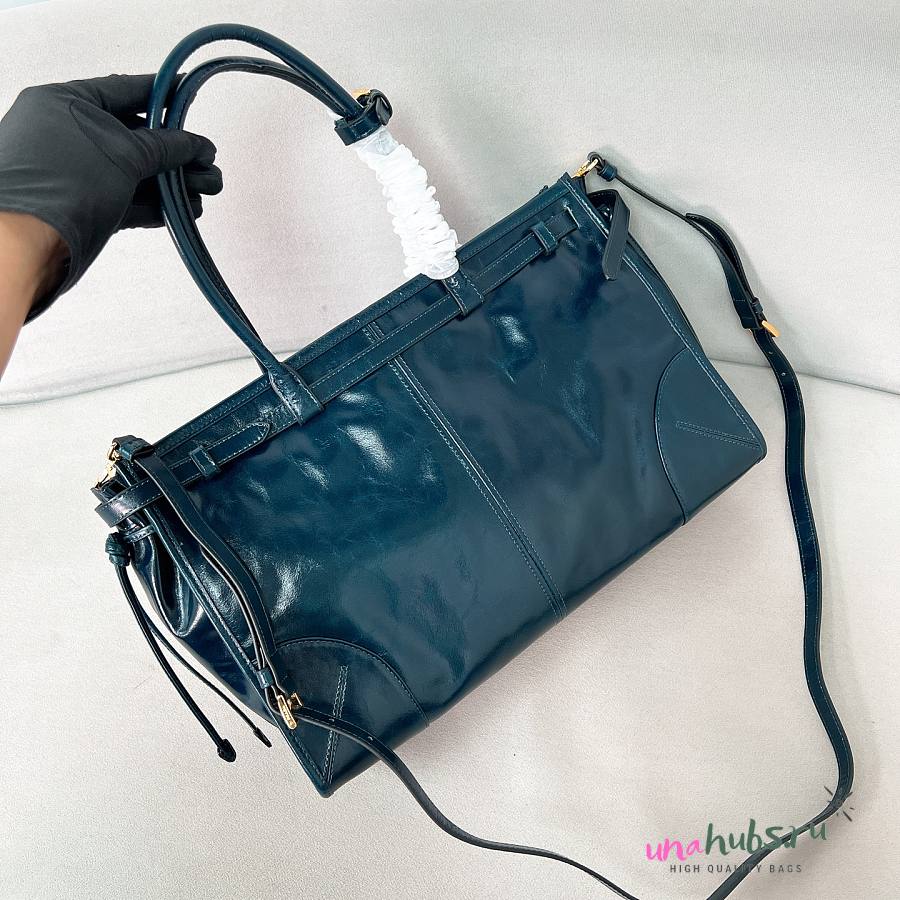 Prada Bonnie Leather Handbag Dark Green 38x30x12cm