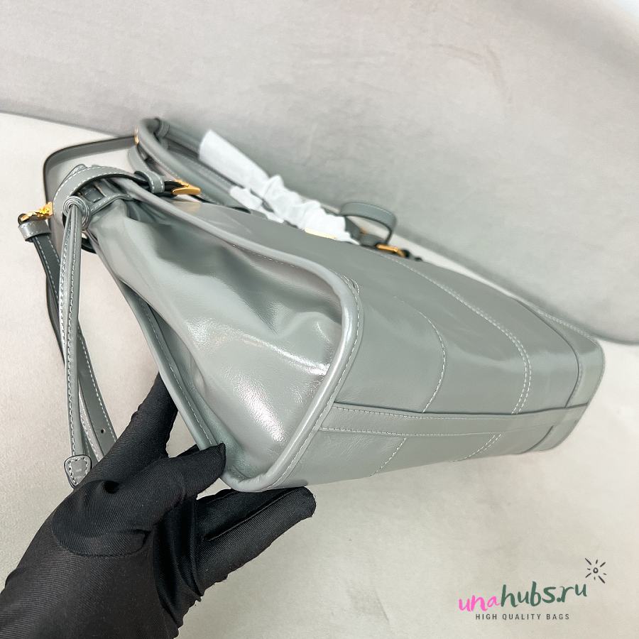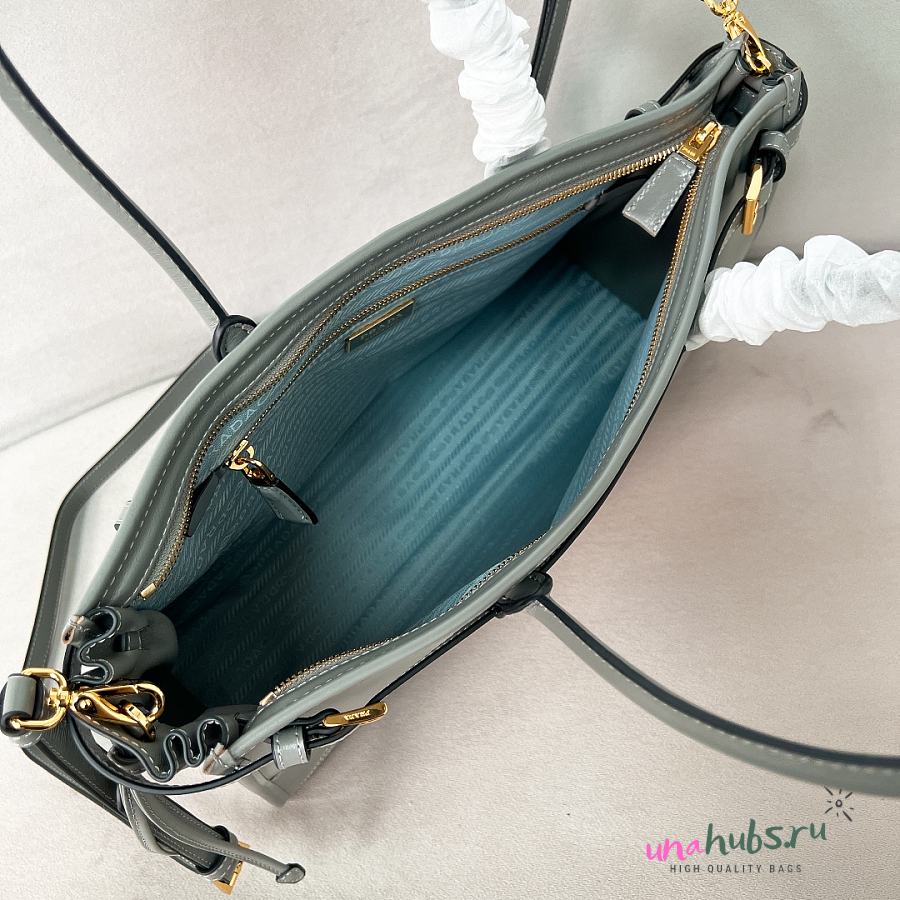Prada Bonnie Leather Handbag Grey Green 38x30x12cm