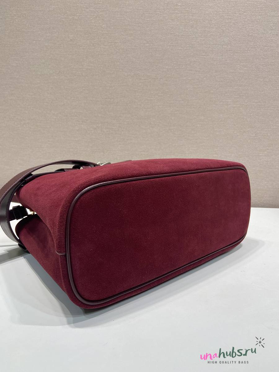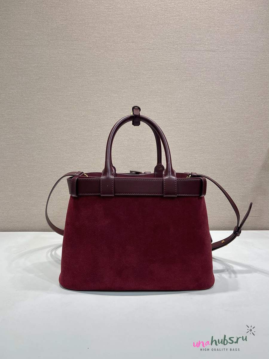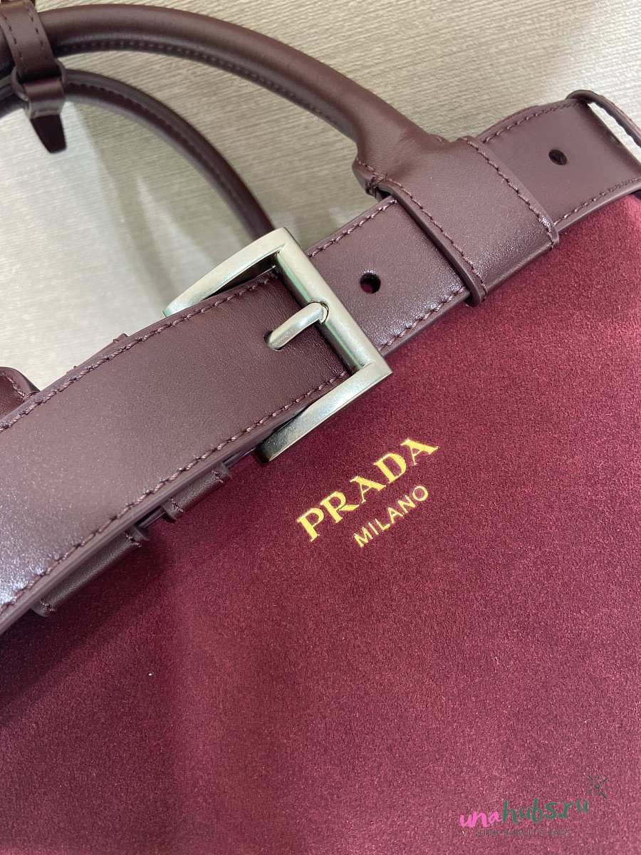 Prada Buckle medium suede bag with belt Burgundy 32x23x11cm