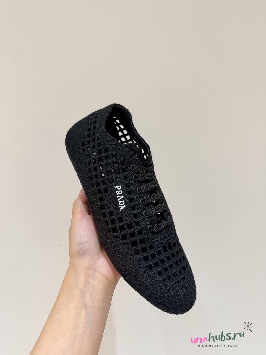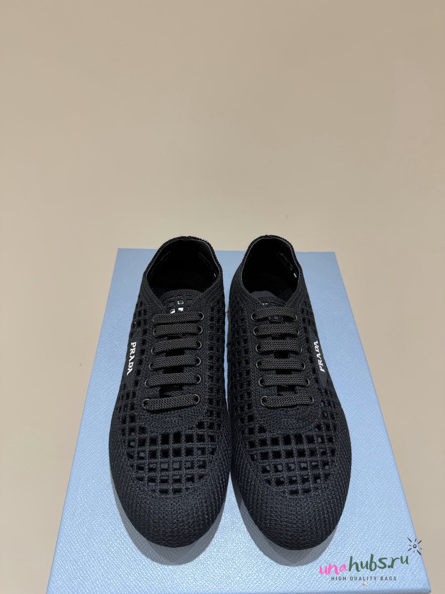 Prada Collapse crochet laced sneakers black - Unahubs