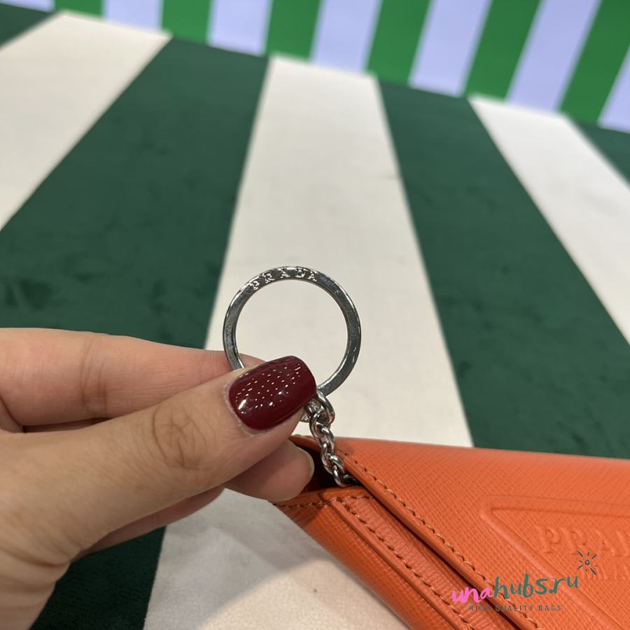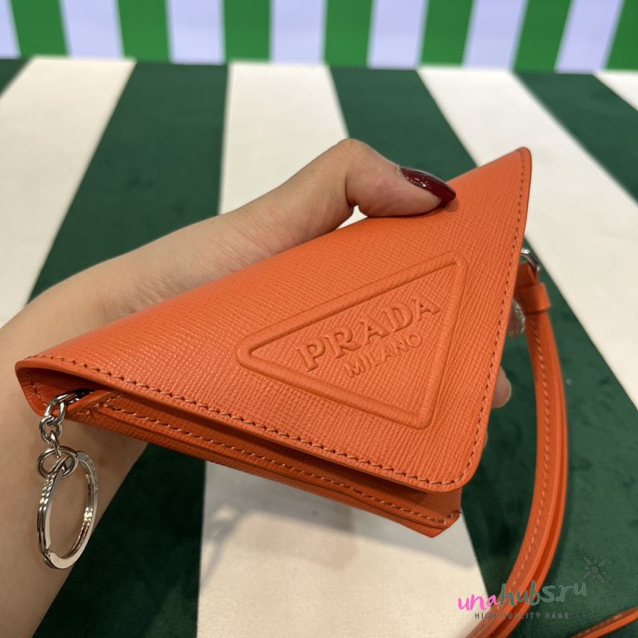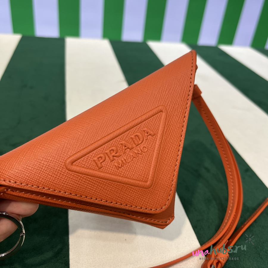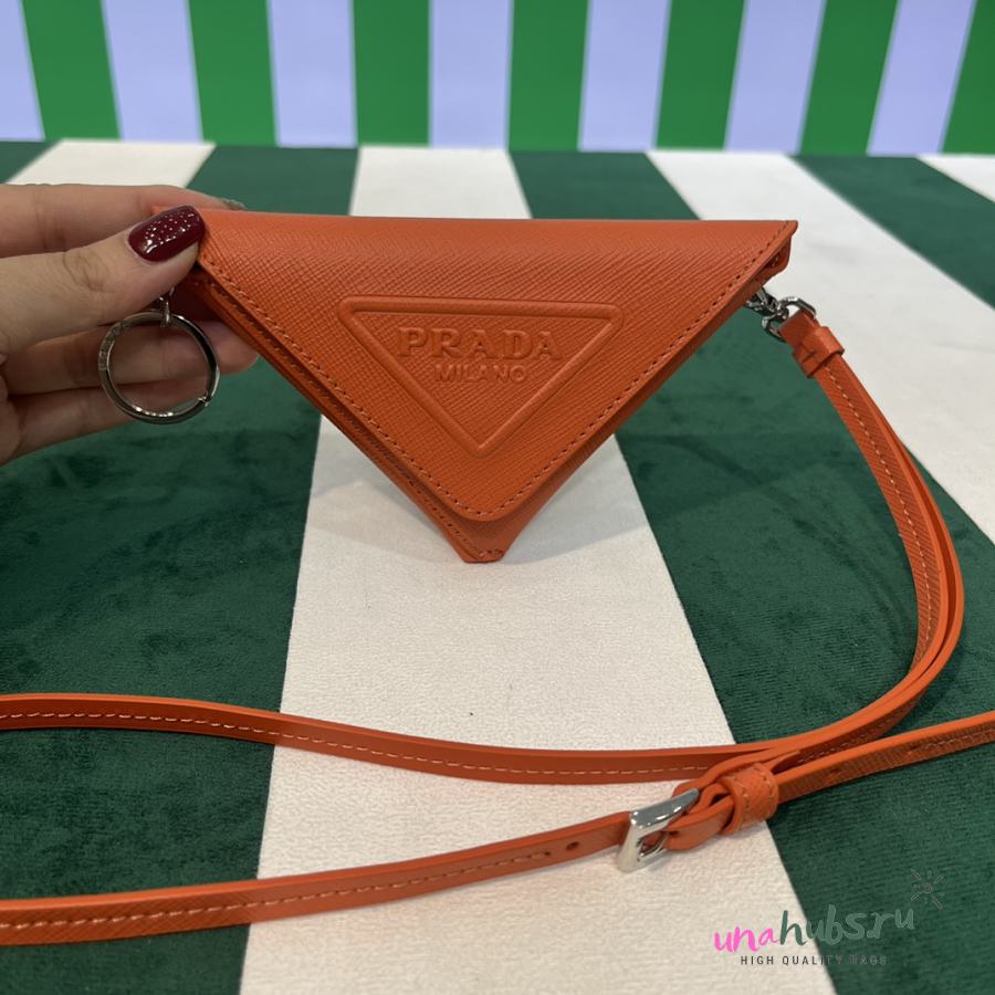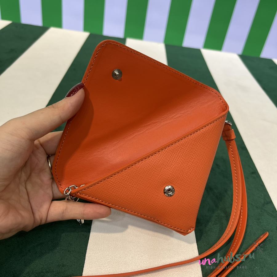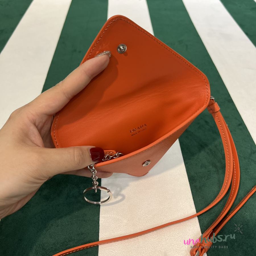 Prada Orange Leather Pouch with Neck Strap - 16.5×12cm