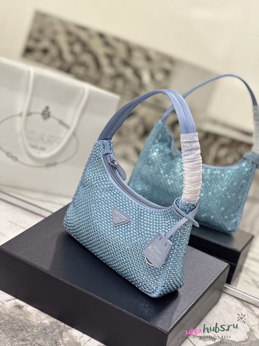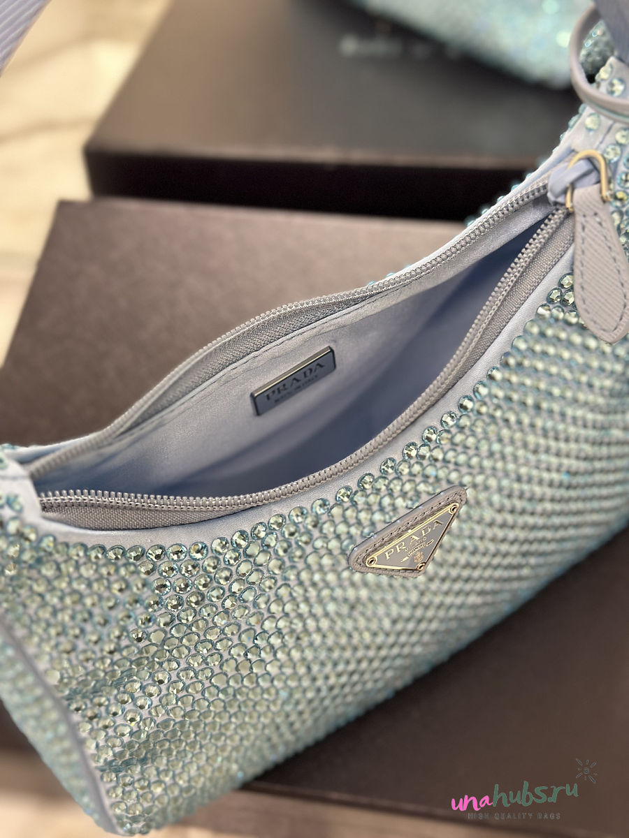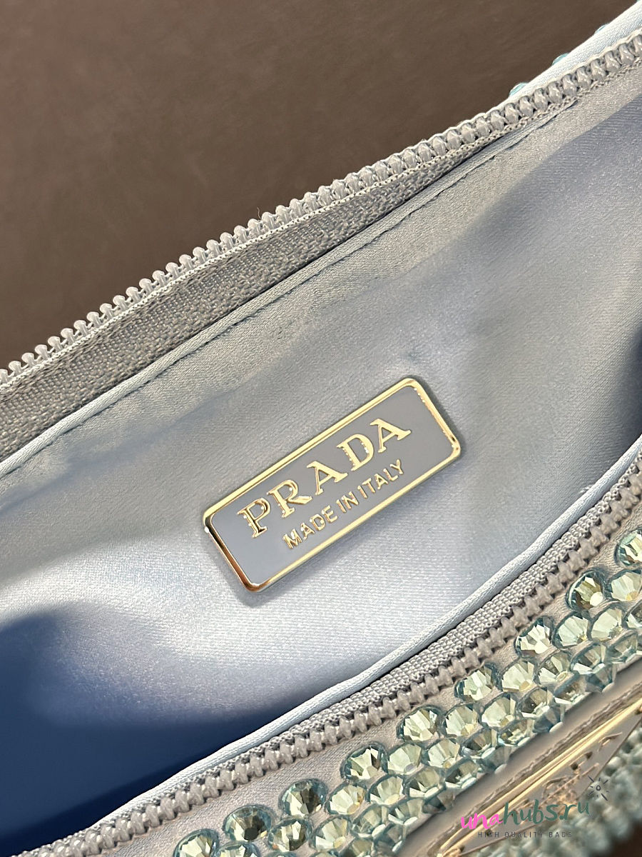Prada Satin Crystal Mini Re-Edition 2000 Bag Blue 23x13x5cm