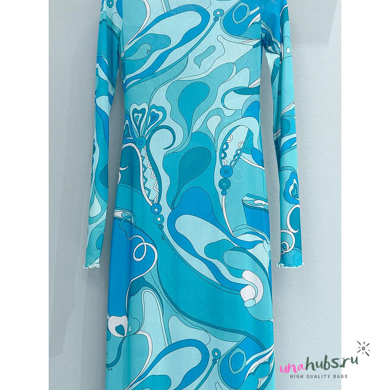Pucci Printed Long Sleeve Maxi Dress In Blue