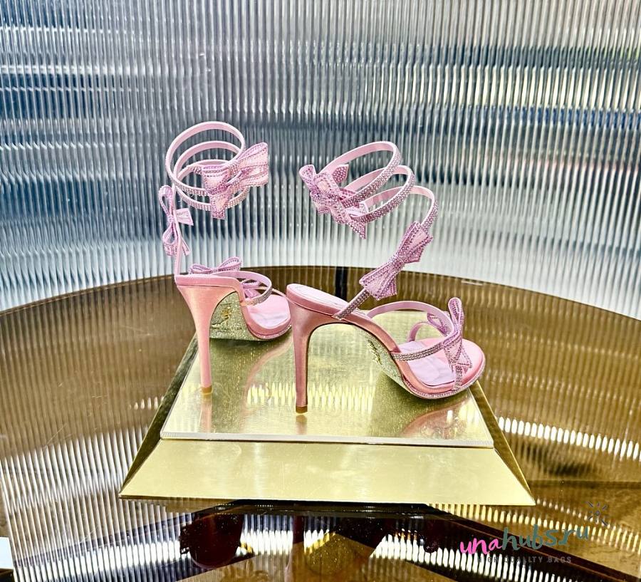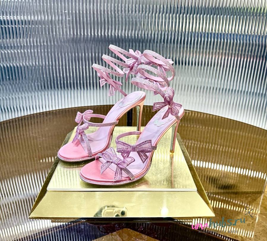 René Caovilla Pink Satin Bow-Embellished Sandals 105