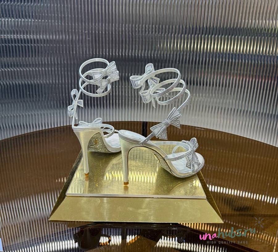 René Caovilla White Satin Bow-Embellished Sandals 105