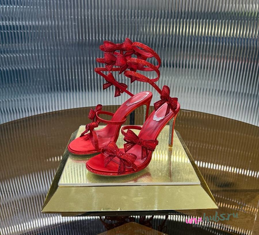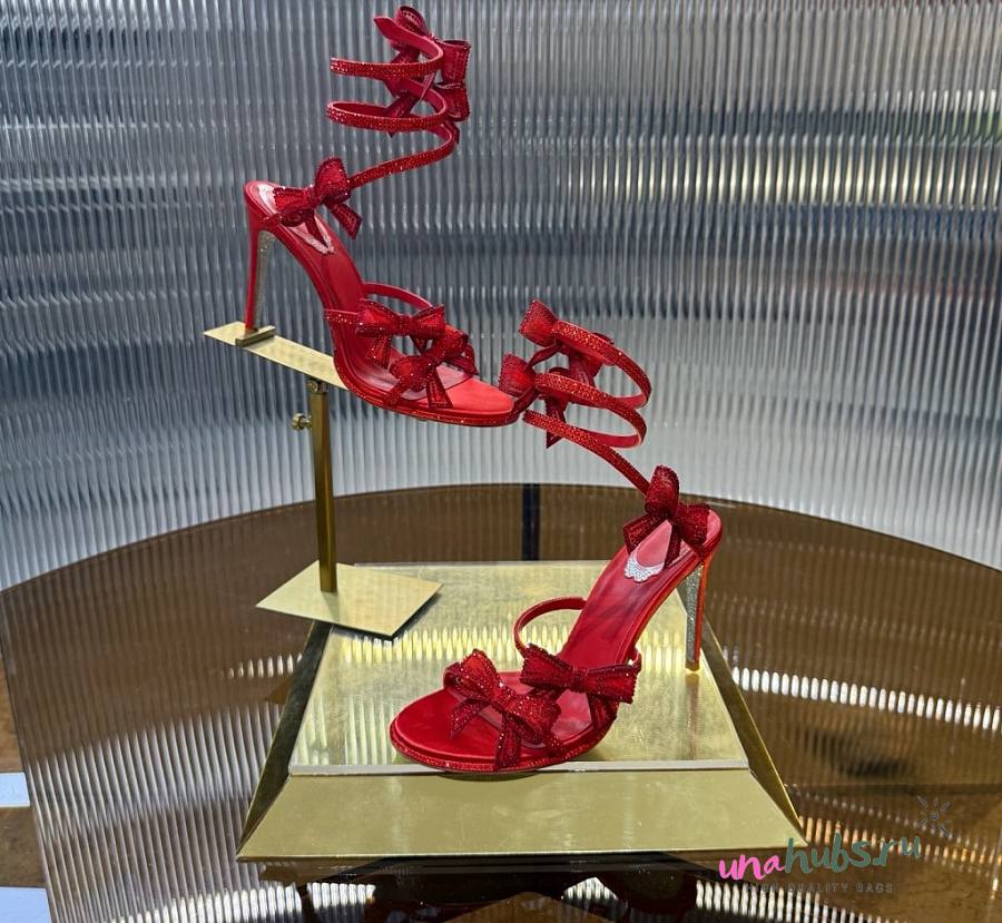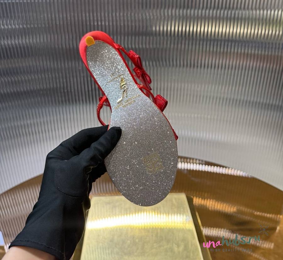 Rene Caovilla Red Satin Bow-Embellished Sandals 105