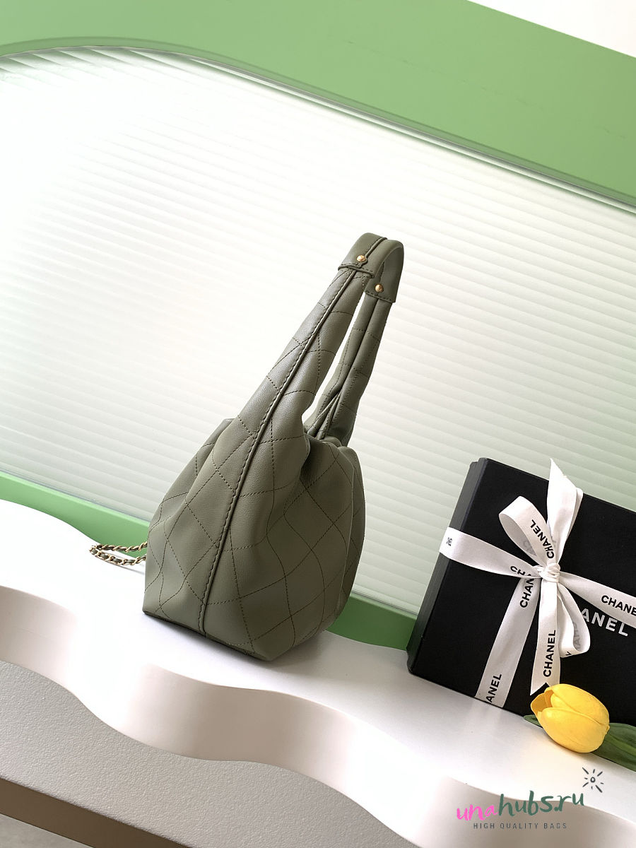 Unahubs Chanel New 26c Hobo Bag Green Lambskin 32x24x12cm