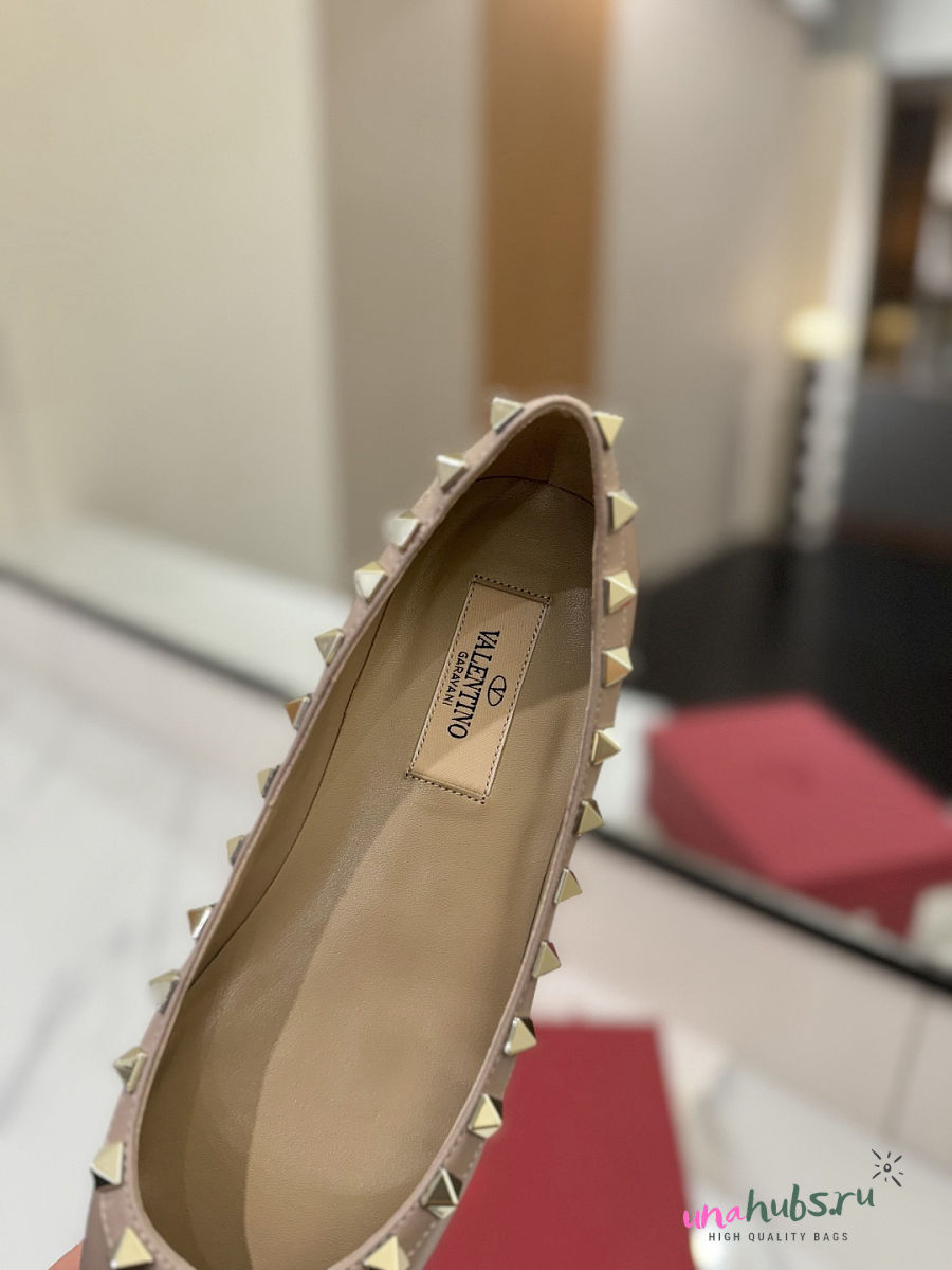 Valentino Garavani Rockstud leather ballet beige flats