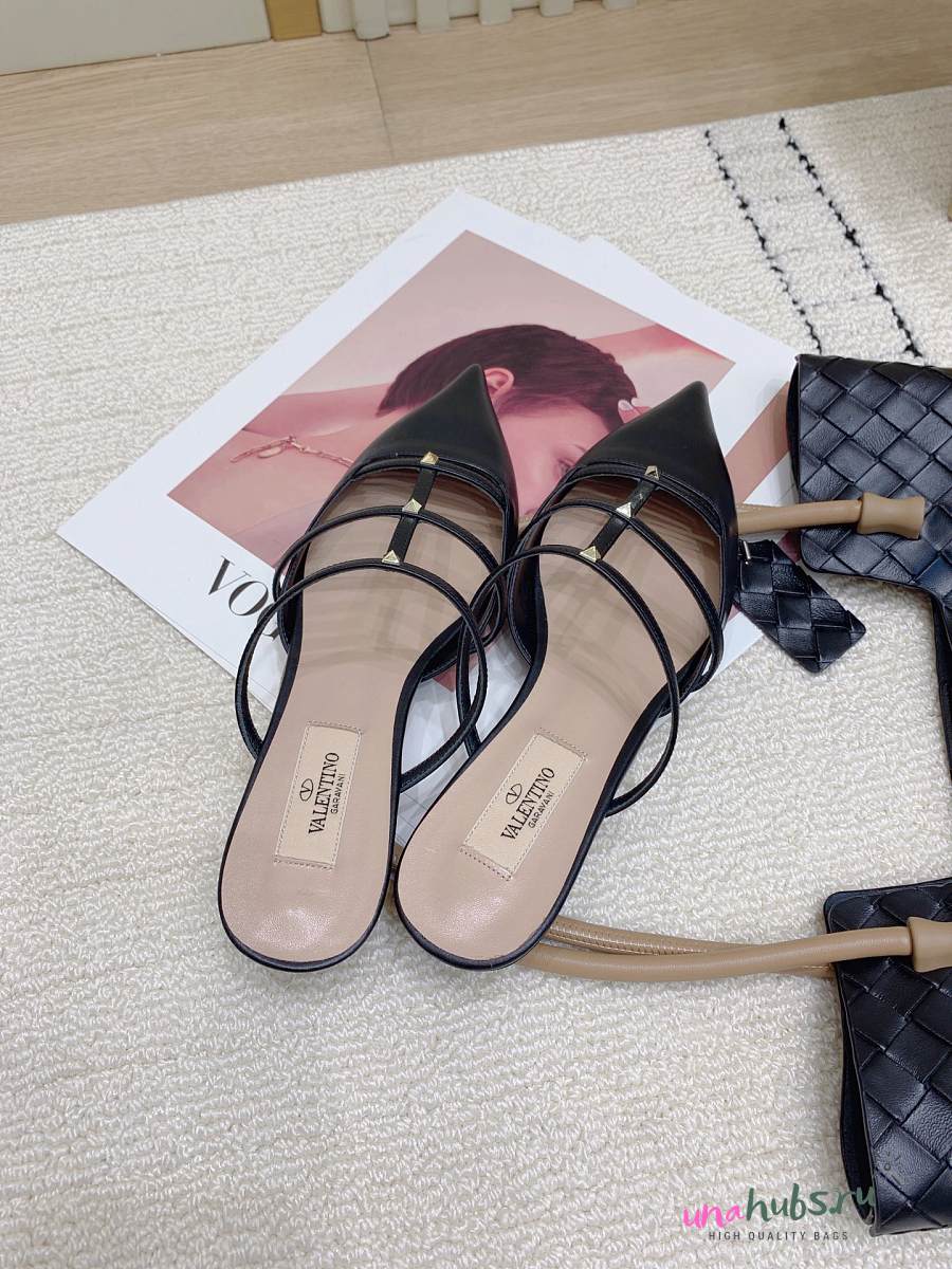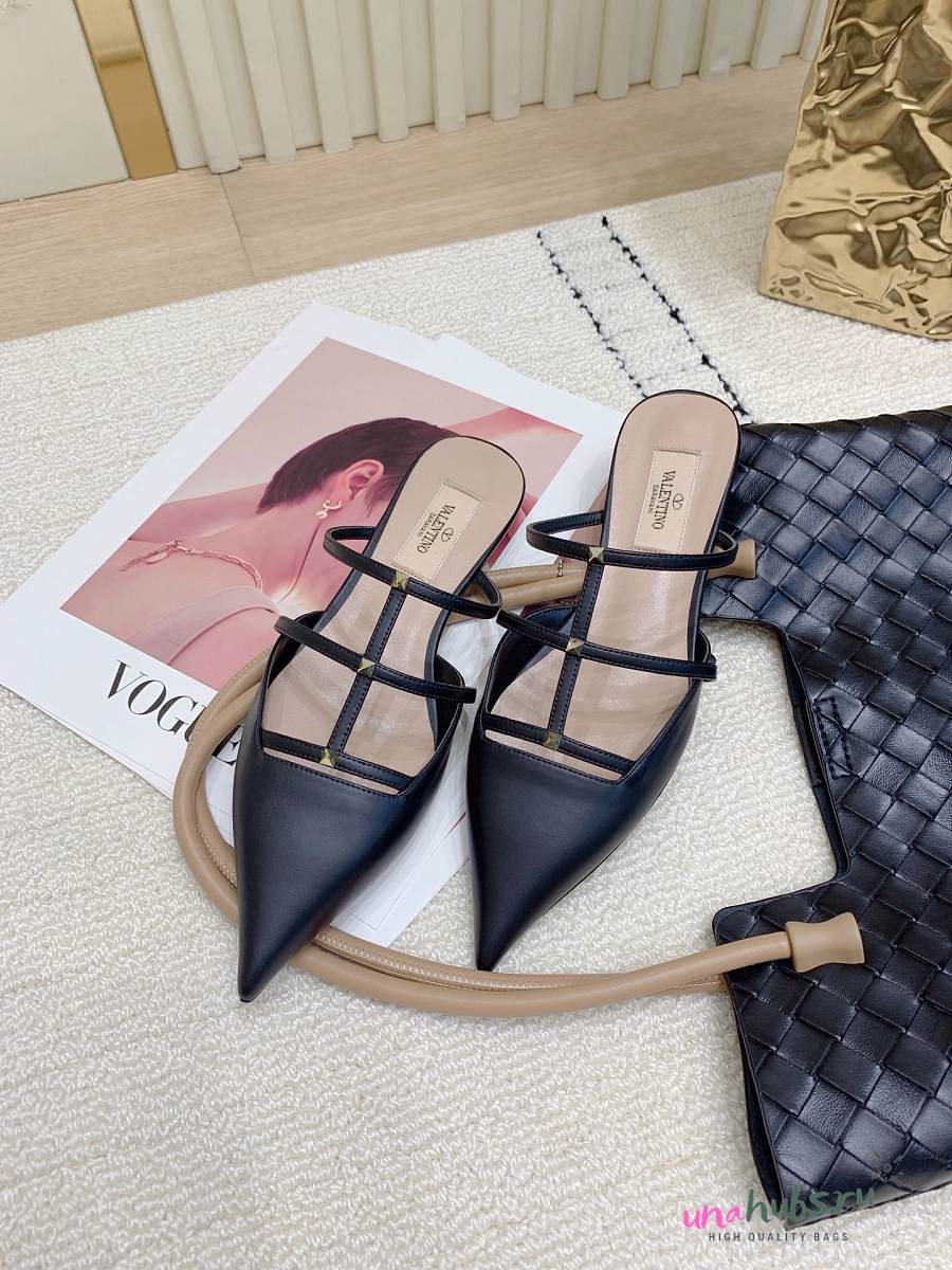 Valentino Garavani Rockstud Wispy Leather Mules In Black