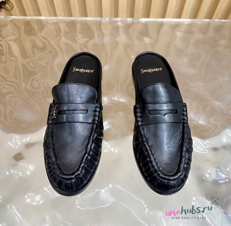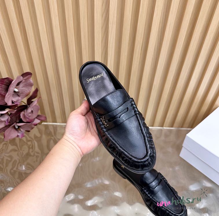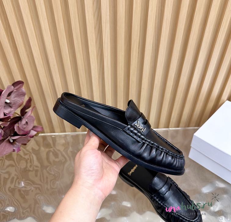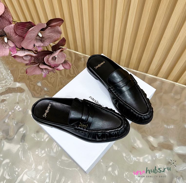 YSL Black leather loafer mule