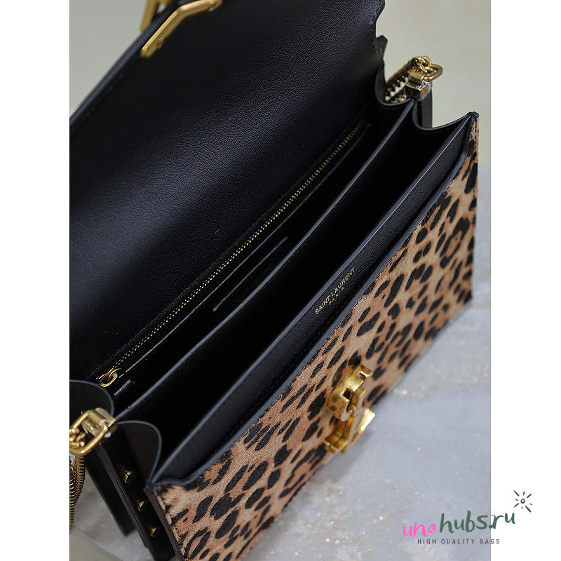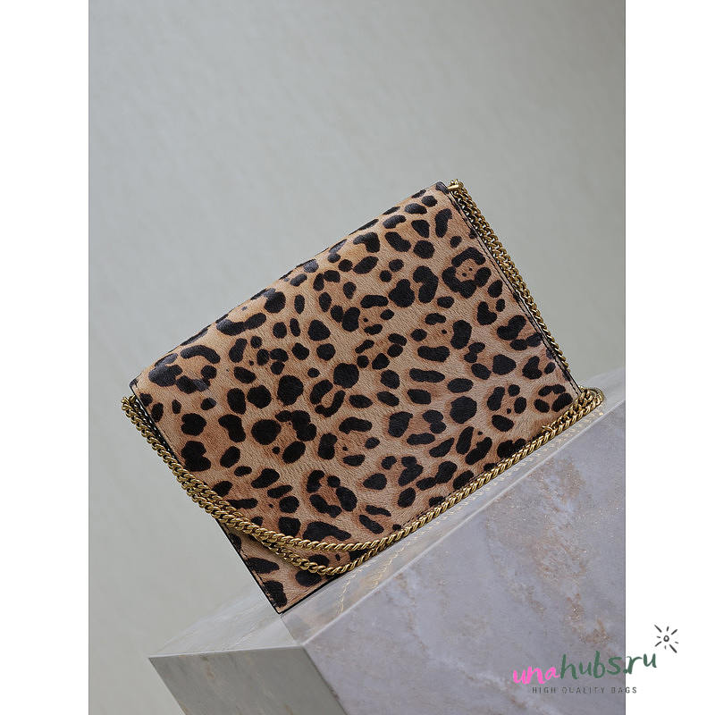 YSL Cassandra Leopard-Print Calf Hair Envelope Bag 22x16.5x5.5cm